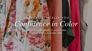 Hear Autumn share her journey of discovering confidence, experience a personal color analysis to learn the shades that bring out your natural beauty, and enjoy connection, encouragement, light refreshments, and a White Peony goodie bag.Tickets are $10 and spots are limited.
