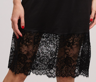 Style: Experience elegance and comfort with the Malarie Midi Slip Skirt, crafted from soft, seamless fabric that gracefully contours your body. Its standout feature is a sheer-illusion lace panel beginning at the thigh and finishing just above the knee, showcasing delicate floral patterns enhanced by an eyelash trim. This refined combination offers a sophisticated, flattering fit ideal for layering or wearing solo.