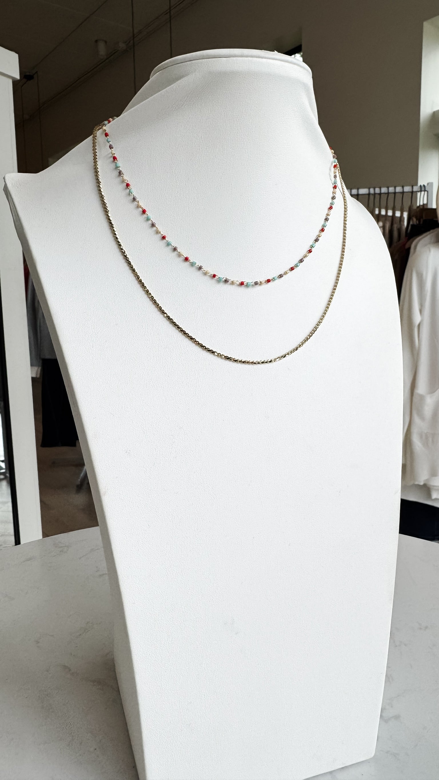 This elegant necklace features a delicate chain adorned with subtle beads, paired with a longer, refined serpentine chain for a sophisticated layered look. Crafted to enhance any outfit, its lightweight design ensures comfortable wear while adding a touch of understated luxury. Ideal for both everyday elegance and special occasions.