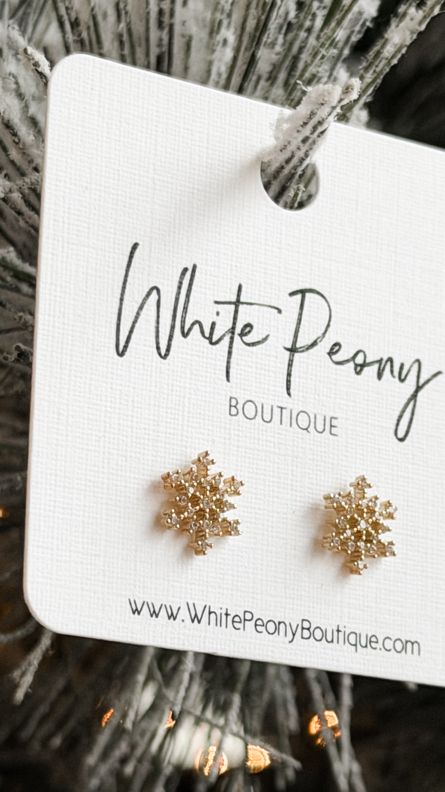 Delicate and radiant, these CZ Snowflake Stud Earrings capture the sparkle of freshly fallen snow. Crafted with shimmering cubic zirconia stones set in a gold-tone finish, they bring a touch of winter magic to any look. Perfect for both everyday elegance and festive occasions.