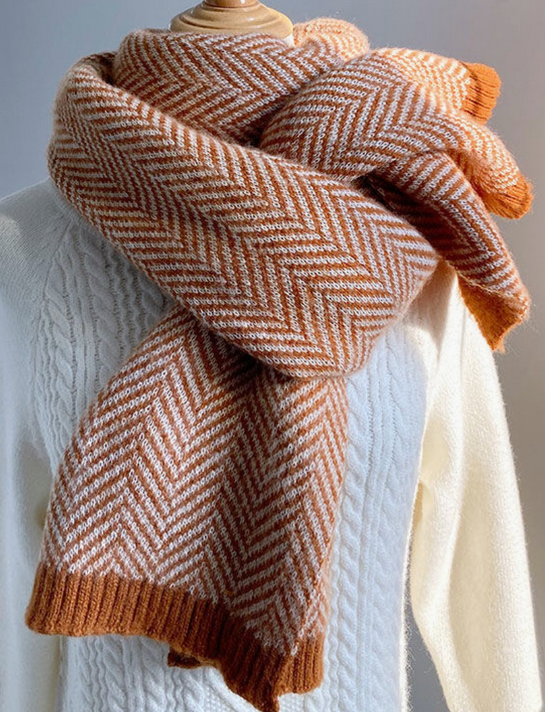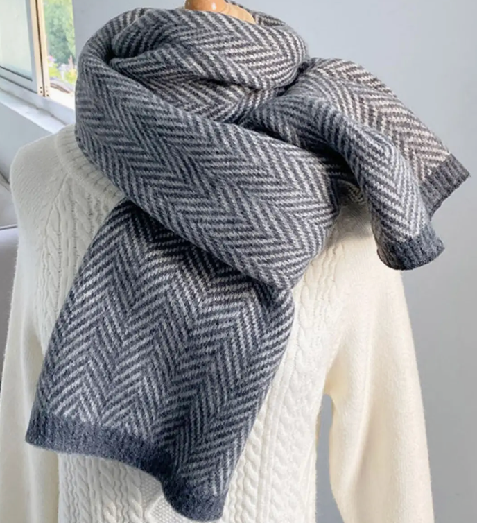 Elevate your cold-weather wardrobe with this luxuriously soft faux cashmere scarf, crafted to deliver premium comfort without the premium price tag. The refined chevron knit pattern adds visual interest and dimension, while the generous 6.5-foot length provides versatile styling options—drape it loosely for an effortless look or wrap it snugly for maximum warmth. Exceptionally plush to the touch, this scarf becomes an instant favorite for layering over coats or pairing with sweaters. A sophisticated accessory that combines tactile luxury with everyday wearability.