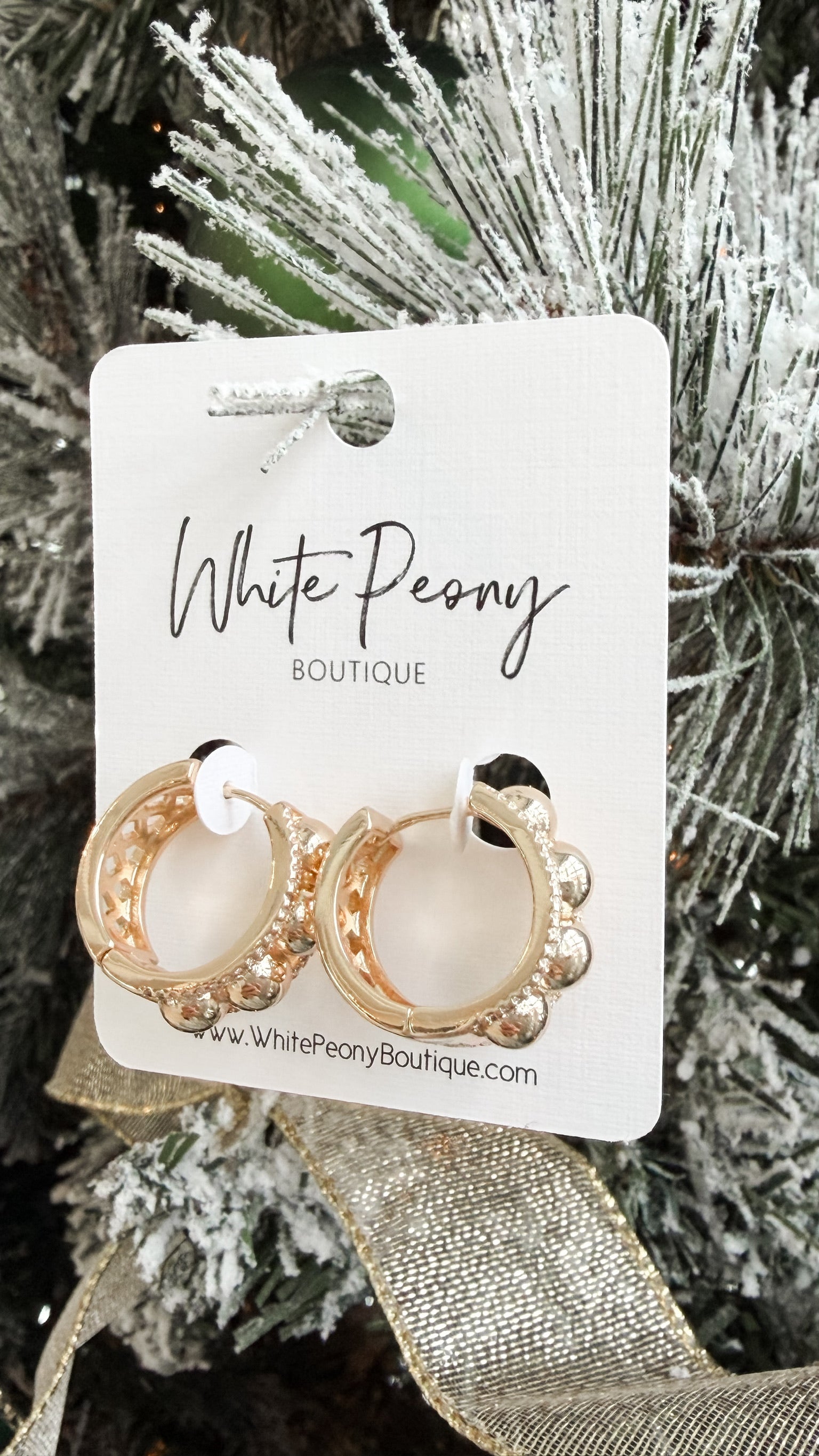 Elevate your look with these chic Gold Sphere Hoops, featuring bold metallic orbs framed by a row of sparkling cubic zirconia accents. The gold-dipped finish adds a touch of sophistication, while the hinge closure ensures a secure and comfortable fit. Perfect for both casual and dressy occasions.