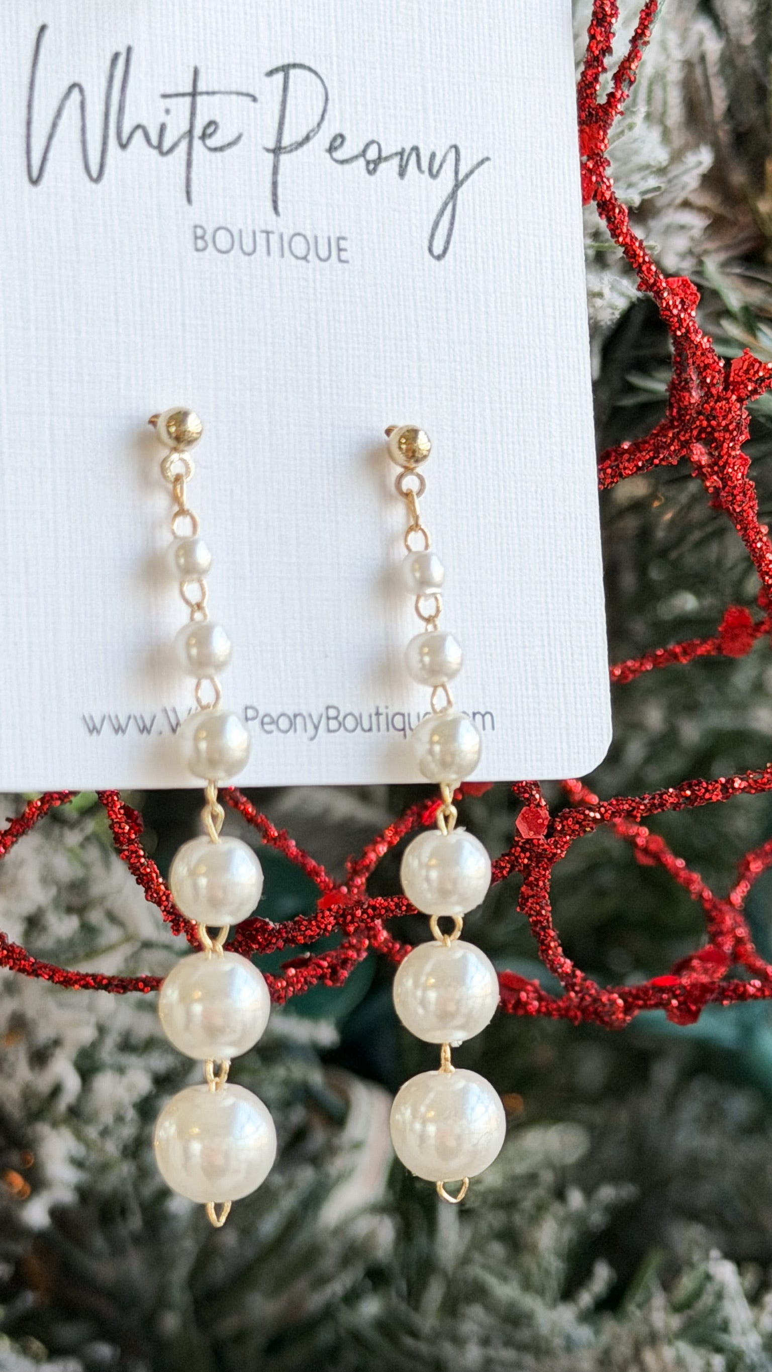 Classic elegance meets modern simplicity. These lightweight drop earrings feature a cascading row of luminous faux pearls in graduating sizes, suspended from delicate gold-tone posts. Perfect for both casual days and special occasions, they add a timeless touch of sophistication to any look.