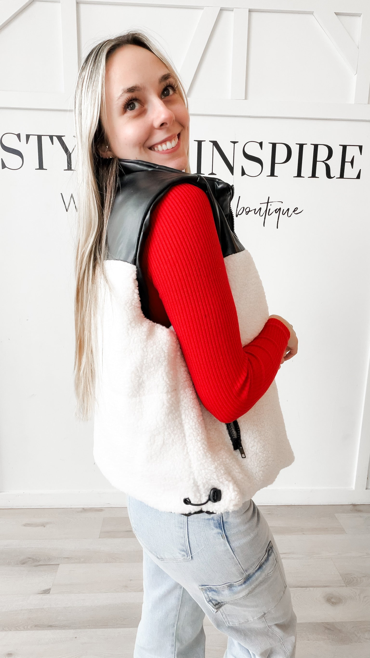 Katheryn Reversible Faux Leather Sherpa Crop Vest