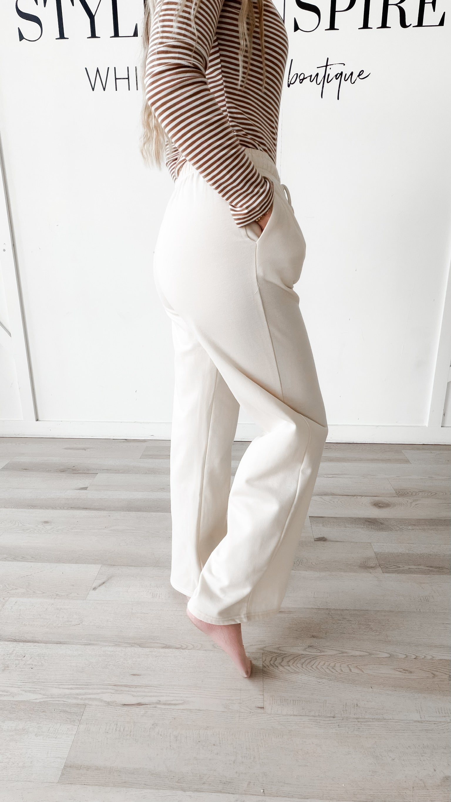 Style: The Dawn Straight Leg Inner Fleece Joggers combine comfort with contemporary silhouette. An elastic waistband paired with an adjustable drawstring ensures a customized fit, while functional side hand pockets add everyday practicality. The straight-leg cut delivers a modern, versatile look that transitions seamlessly from casual to elevated styling. Lined with soft fleece, these joggers provide warmth and coziness without bulk, making them an essential layering piece for cooler seasons.