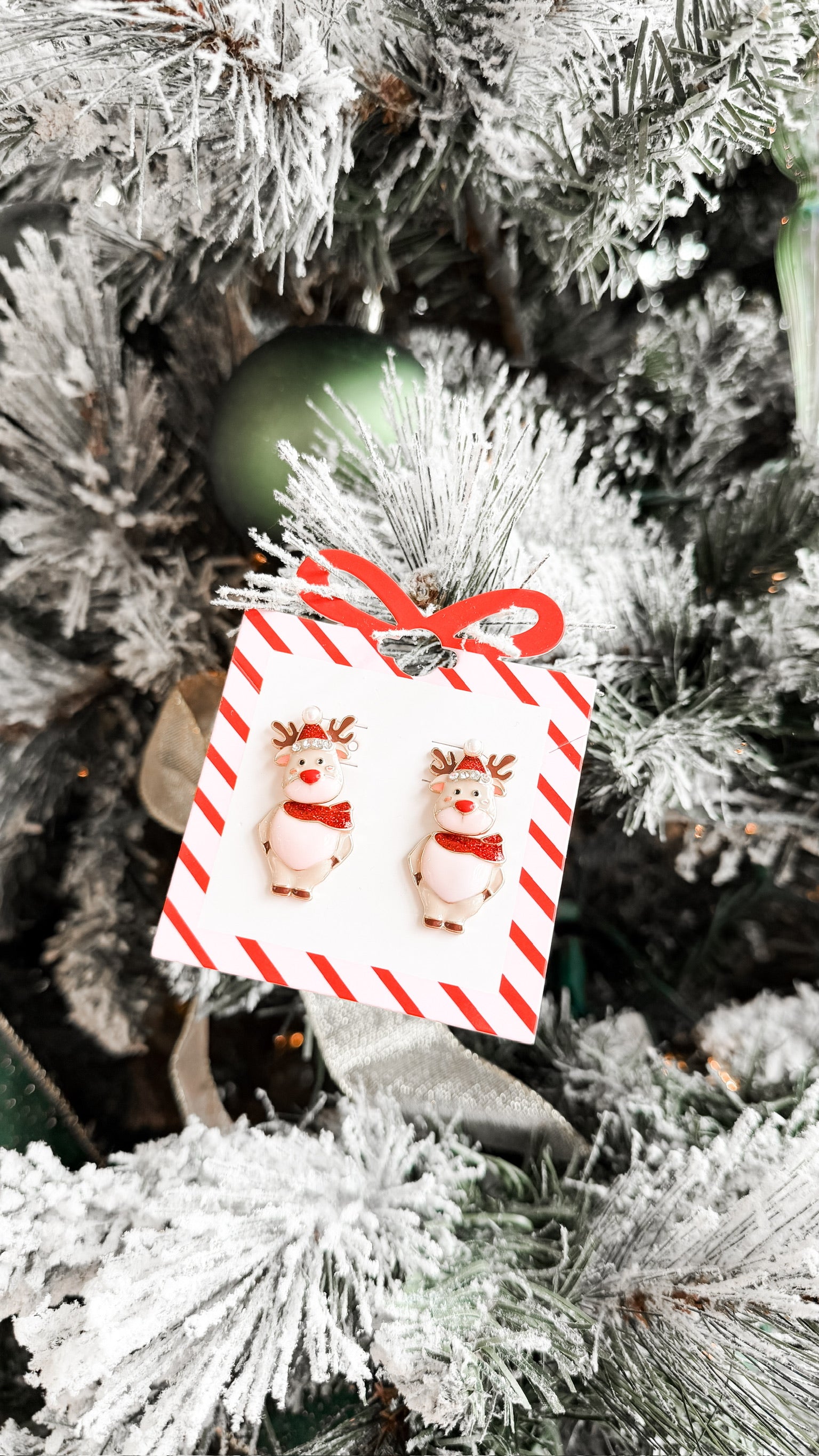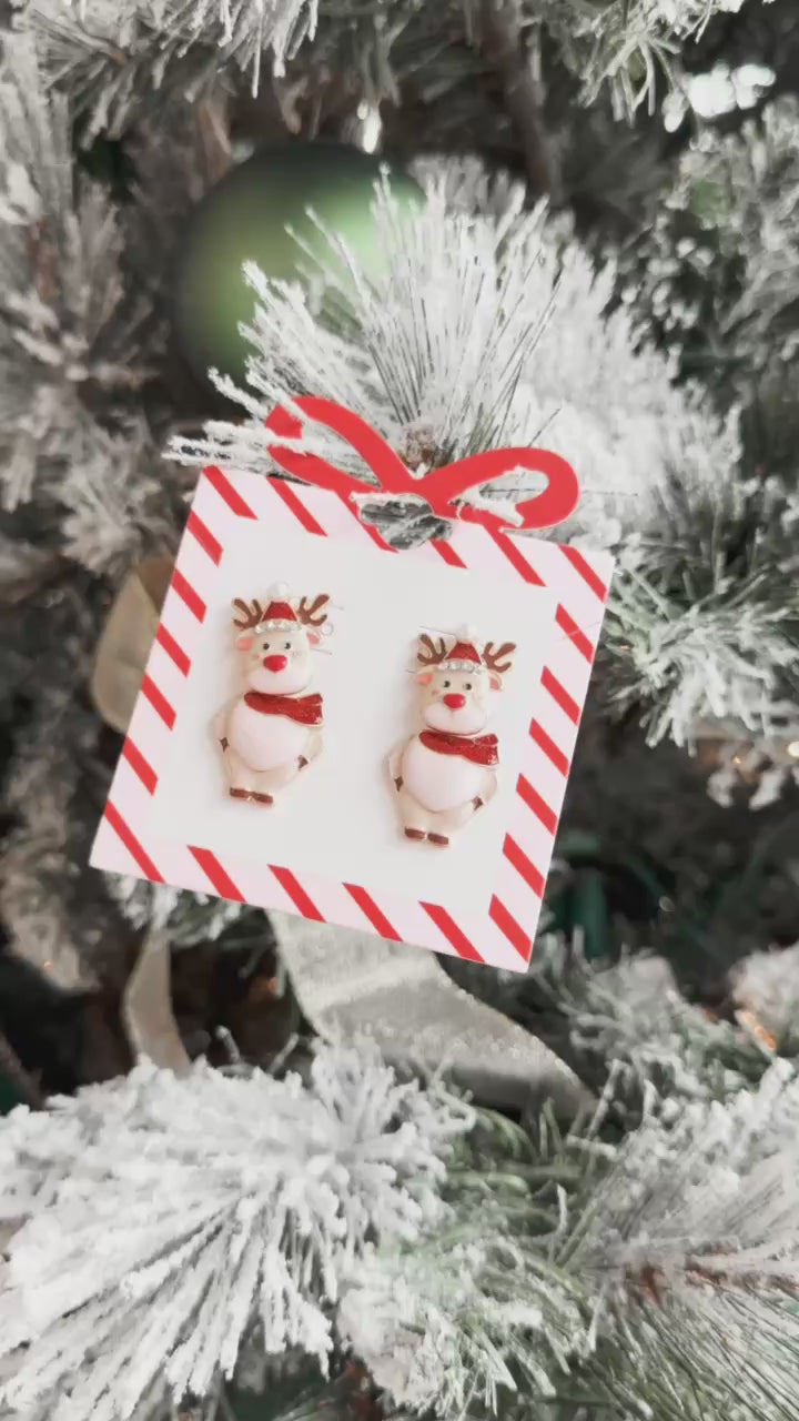 Celebrate the season with these adorable Reindeer Holiday Earrings. Featuring cheerful enamel reindeer dressed in red scarves and glittering Santa hats, these playful studs add a whimsical touch to any festive outfit. Lightweight and full of personality, they’re perfect for holiday parties or gift giving.