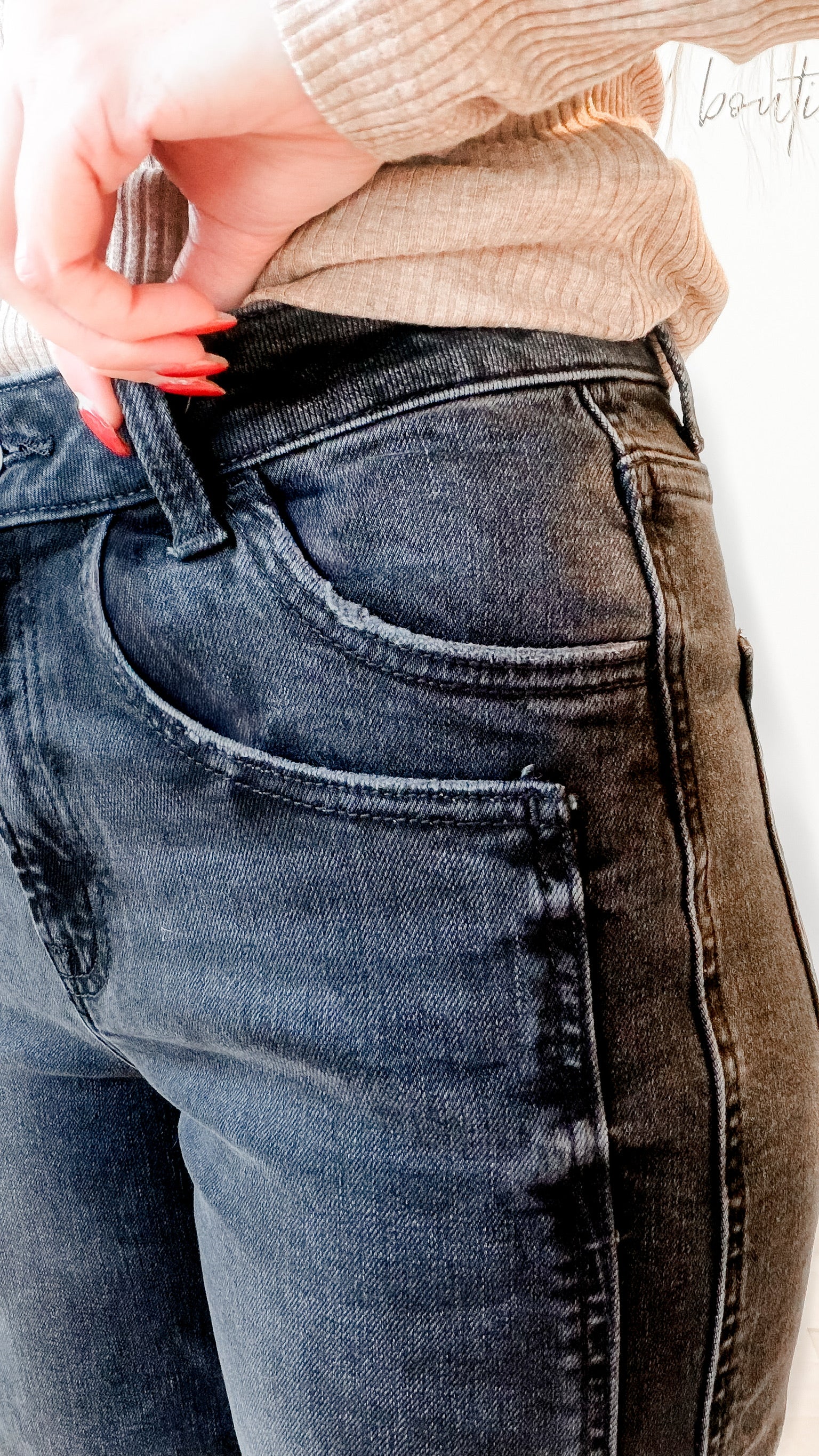 Fit: 28" Inseam. Super high rise. Cuffed baggy wide jean. Comfort stretch. Double front pocket detail. No distressing.