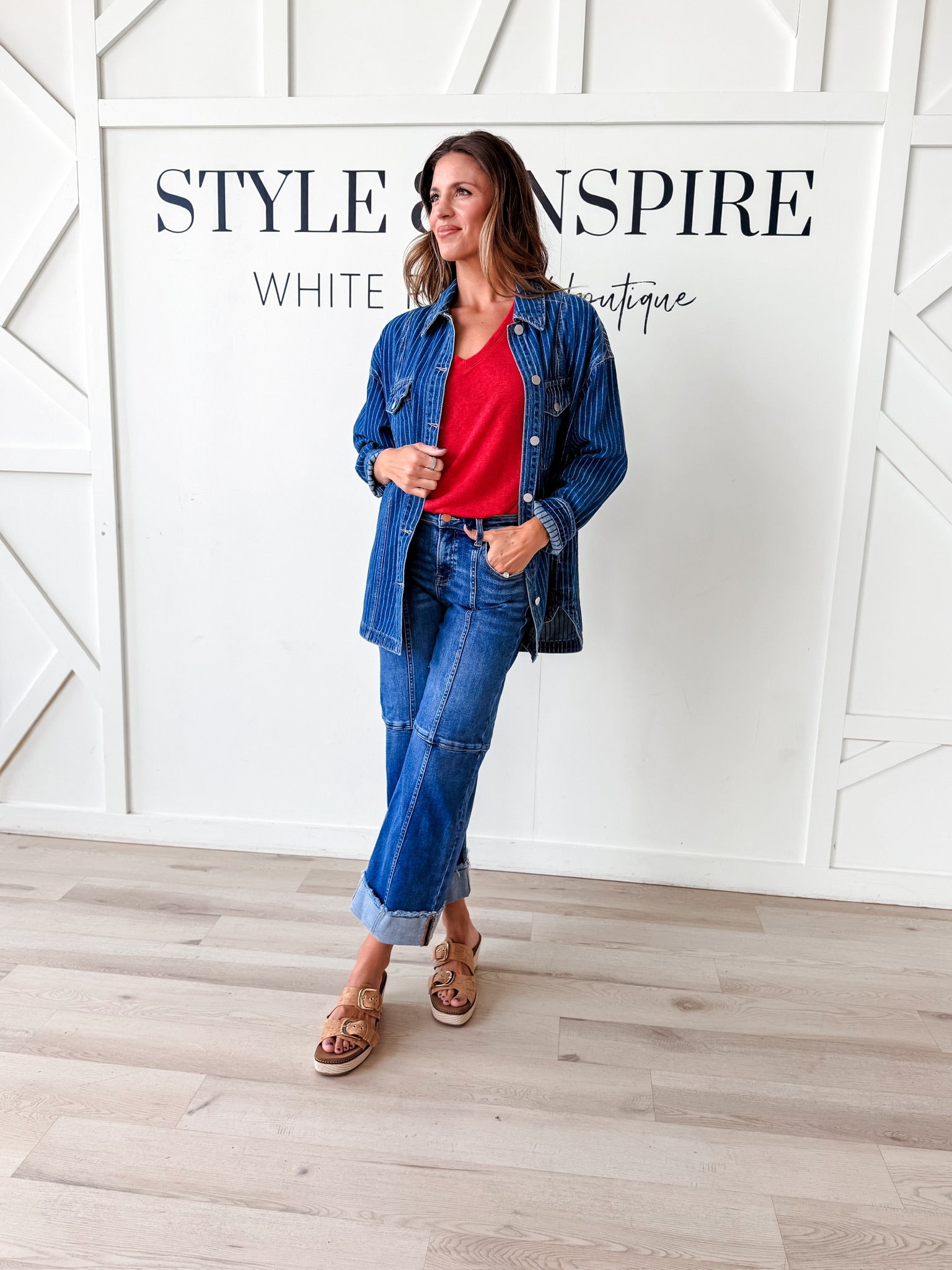 Roomy and relaxed for easy layering — throw it over tees, tanks, or even lightweight sweaters.