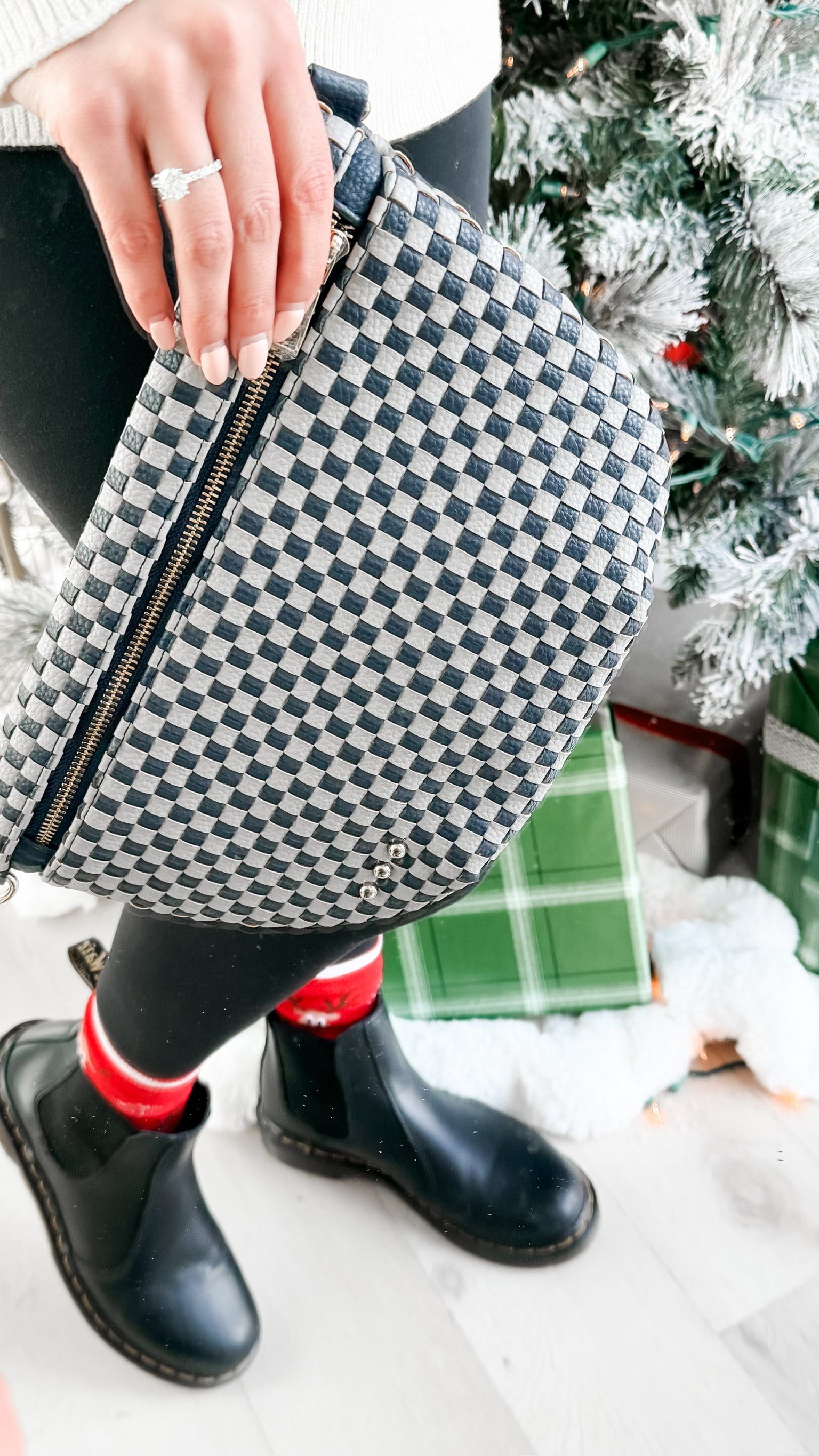Meet the Westlyn Woven Bum Bag! Gorgeous woven vegan leather in 4 colors with a unique block design on the strap gives us edgy, rocker vibes. Beautiful hardware with a zipper closure with beige and black chevron interior, and a zippered slash pocket on the inside. This crossbody bag is the perfect accessory to elevate any outfit!