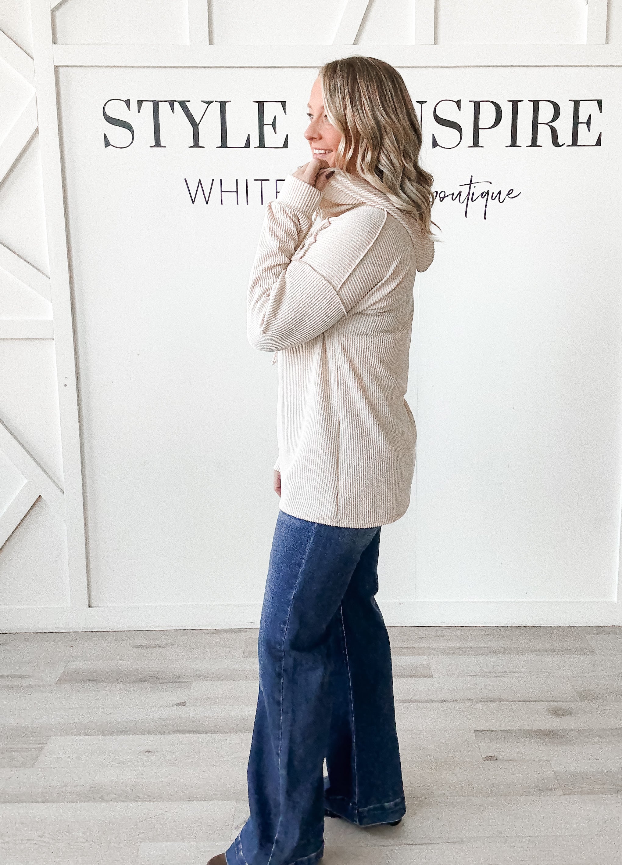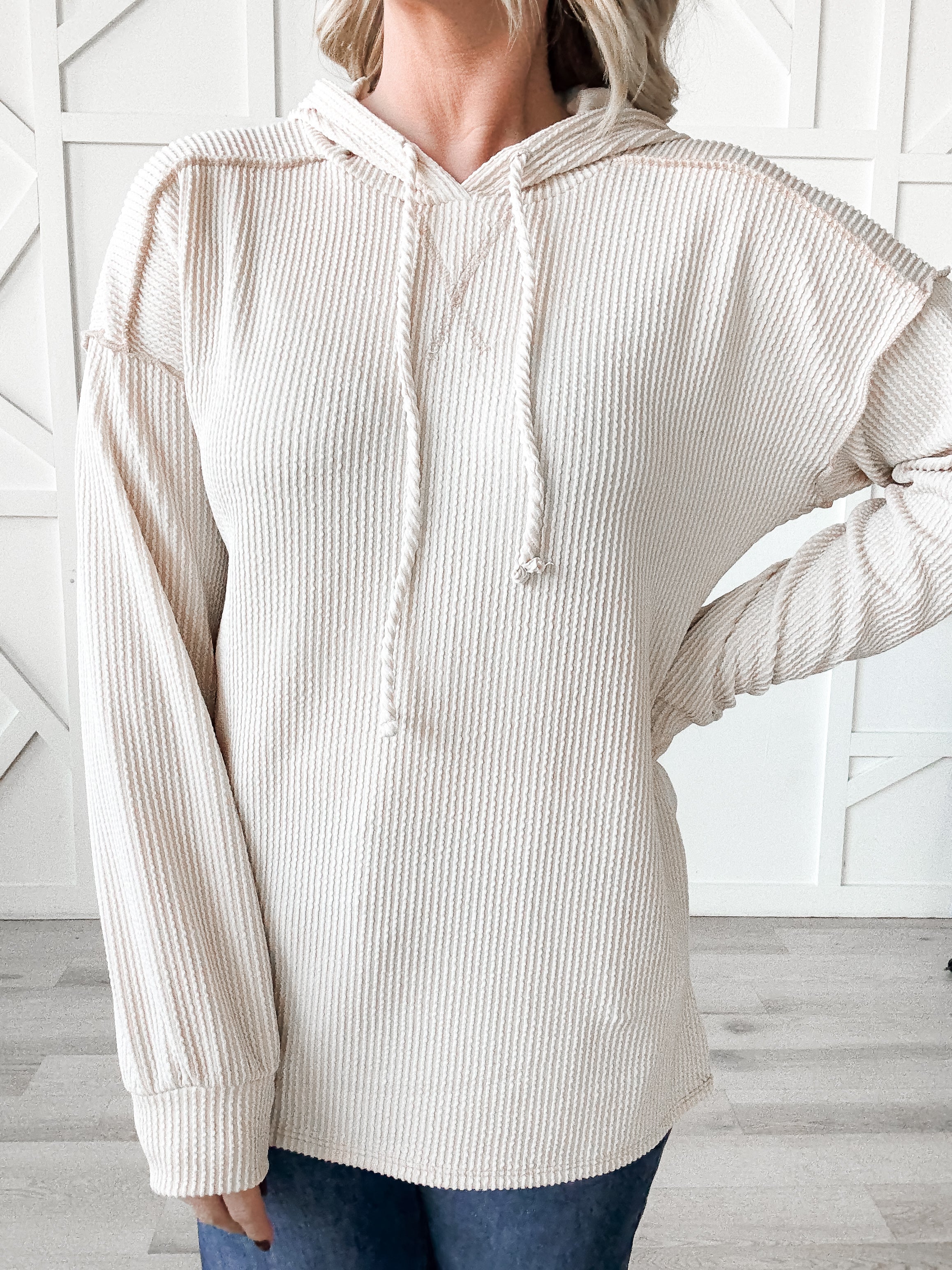 Style: The Marlys Urban Ribbed Hoodie features an adjustable hood with drawstrings for a customizable fit and relaxed drop shoulders that enhance comfort. Its long puff sleeves add a modern silhouette, while the straight hem falls neatly at the mid-hip. Crafted from durable urban rib knit fabric, this hoodie also showcases subtle contrast stitching for a refined, contemporary edge—perfect for an elevated casual look.