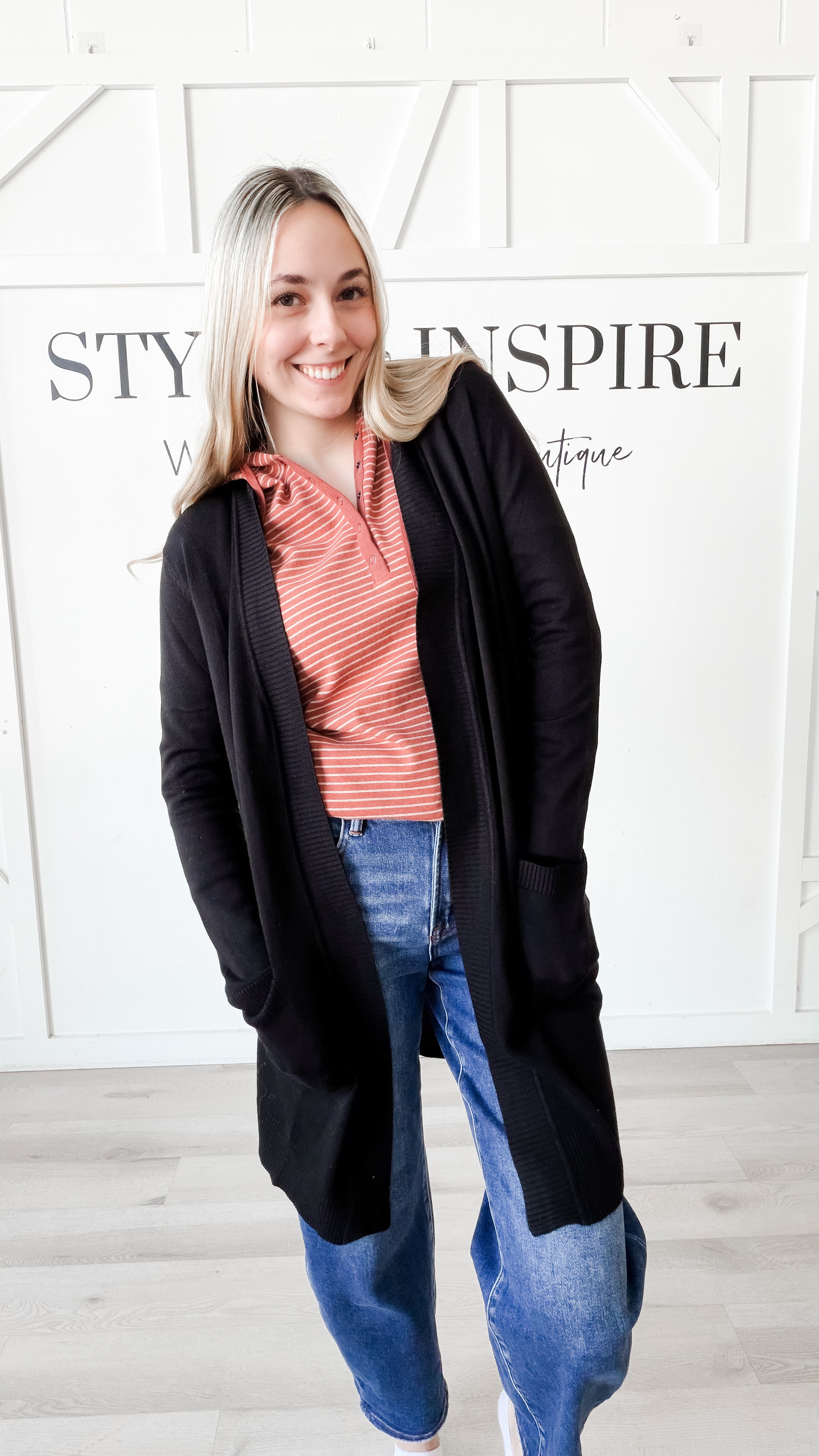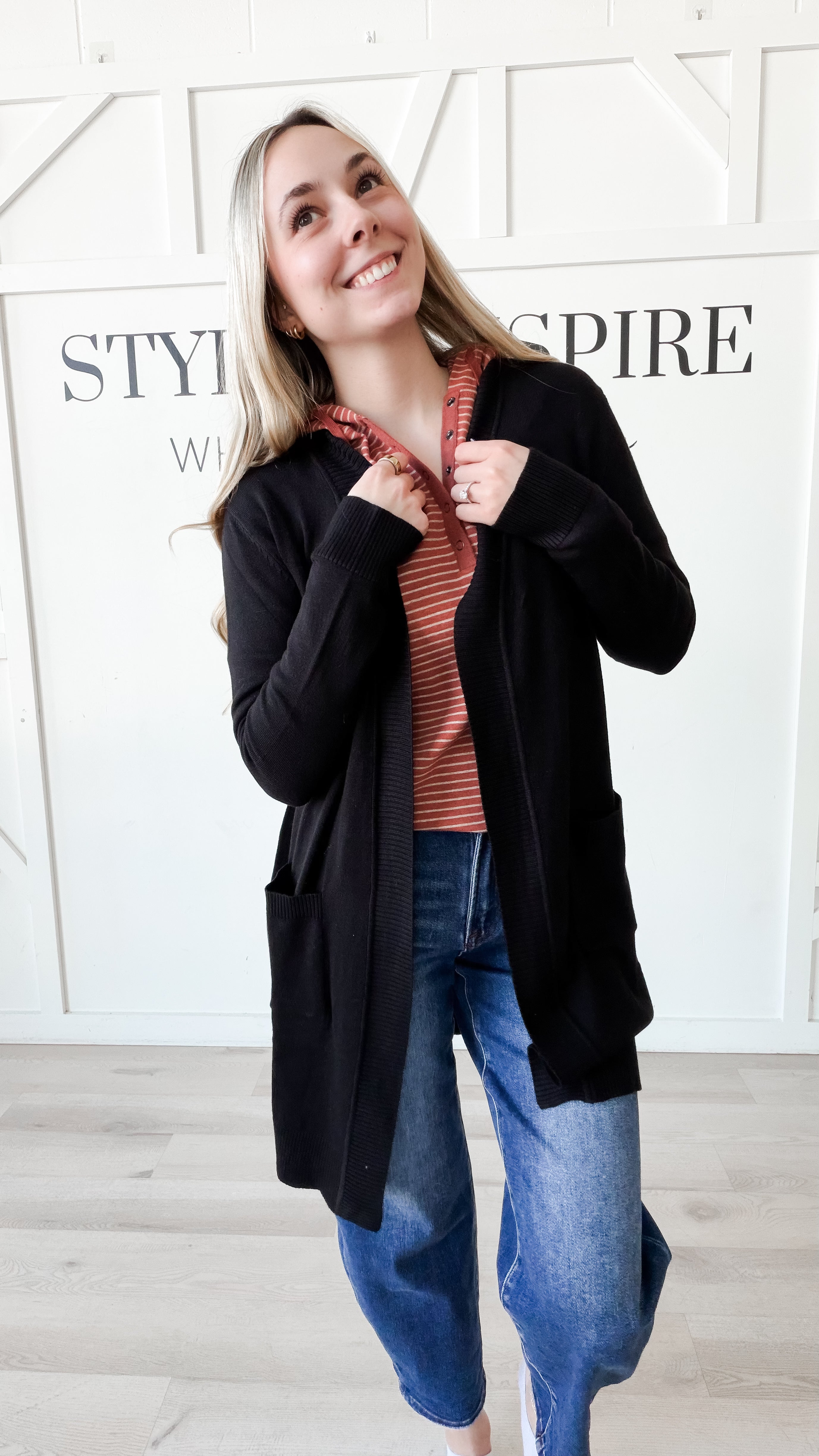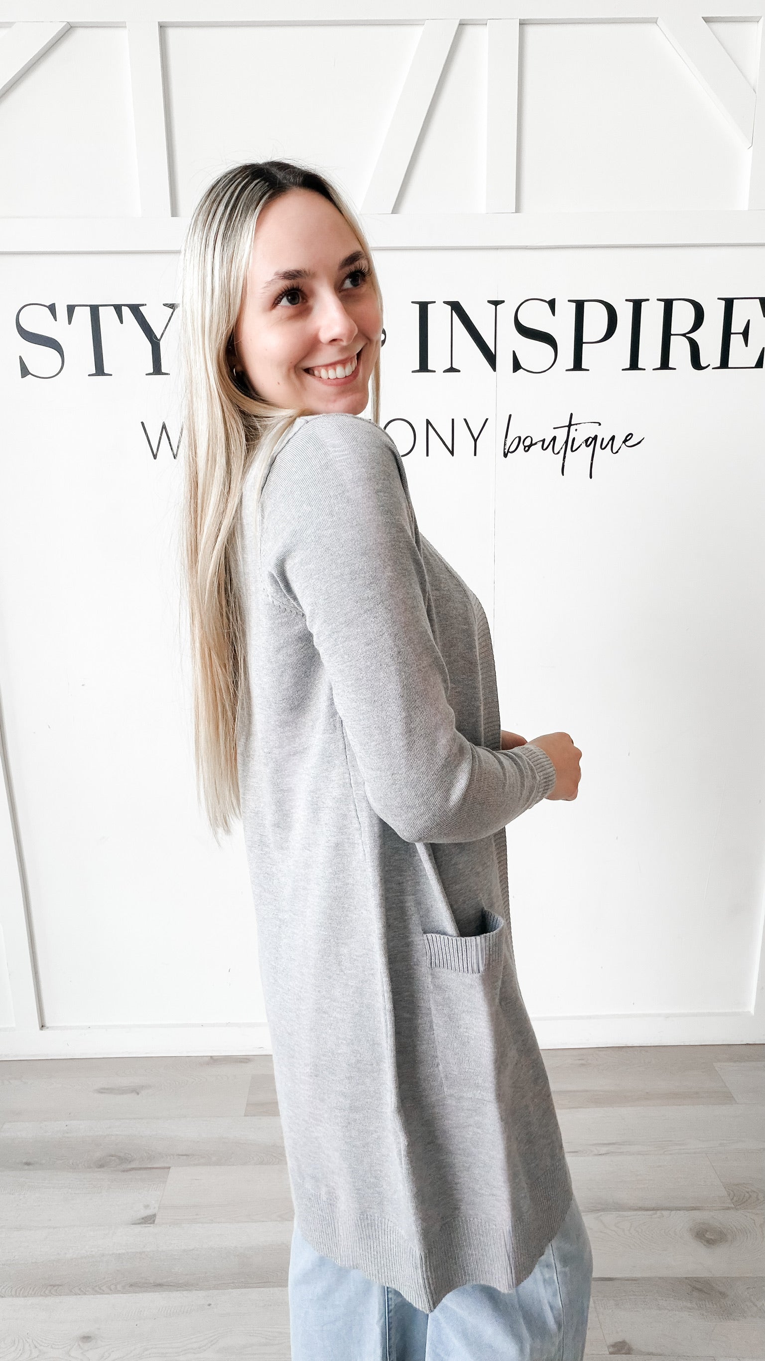 Style: The Sylvia Long Line Open Cardigan delivers effortless layering with its extended silhouette that skims to the knee. Crafted from a lightweight sweater knit, it feels remarkably soft against the skin while maintaining its shape. Contrast ribbing details the cuffs, pocket trim, and front edging for a polished, intentional finish. Functional front patch pockets add practical appeal. Perfect for transitional dressing, this piece works equally well over basics or as a statement layer in your everyday rotation.