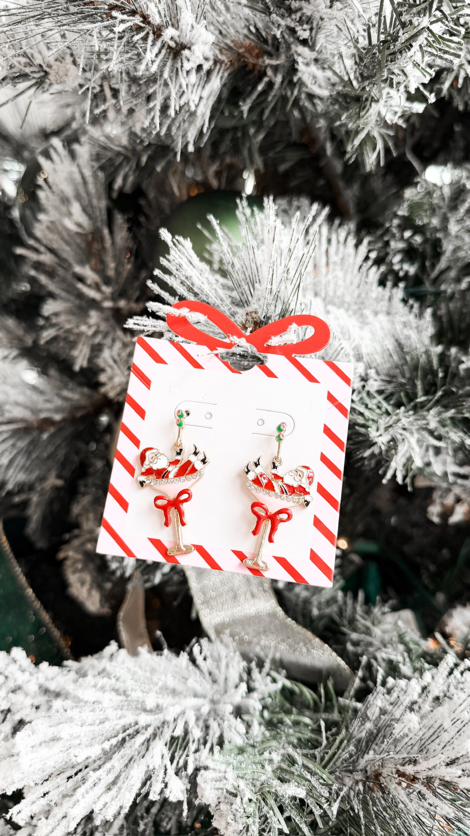 Toast to the holidays with these playful Santa Martini Earrings. Featuring Santa lounging in a glittering martini glass adorned with rhinestones and a festive red bow, these earrings bring cheerful charm and sparkle to any celebration. Lightweight and full of holiday spirit, they’re a fun statement piece for parties or gifting.