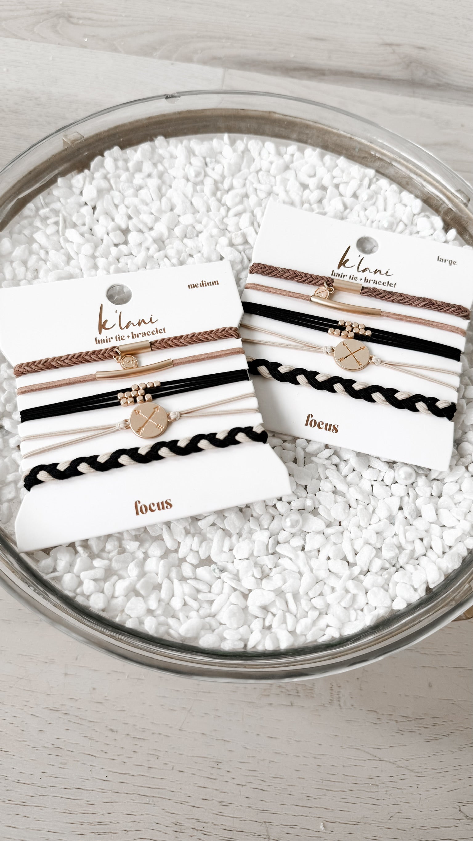 K'lani hair tie Bracelets are affordable, darling bracelet stacks that also work as the best hair ties!