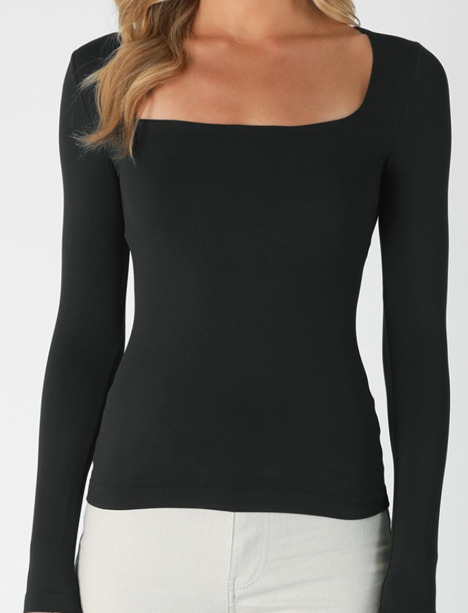 Style: Nikibiki's square neck long sleeve top combines timeless elegance with versatile styling. The structured square neckline creates a flattering silhouette, while long sleeves provide coverage and sophistication. A straight hem ensures a polished, streamlined look that transitions seamlessly from casual to dressed-up occasions. This wardrobe essential pairs effortlessly with everything from denim to tailored trousers, making it a reliable choice for building a cohesive collection.