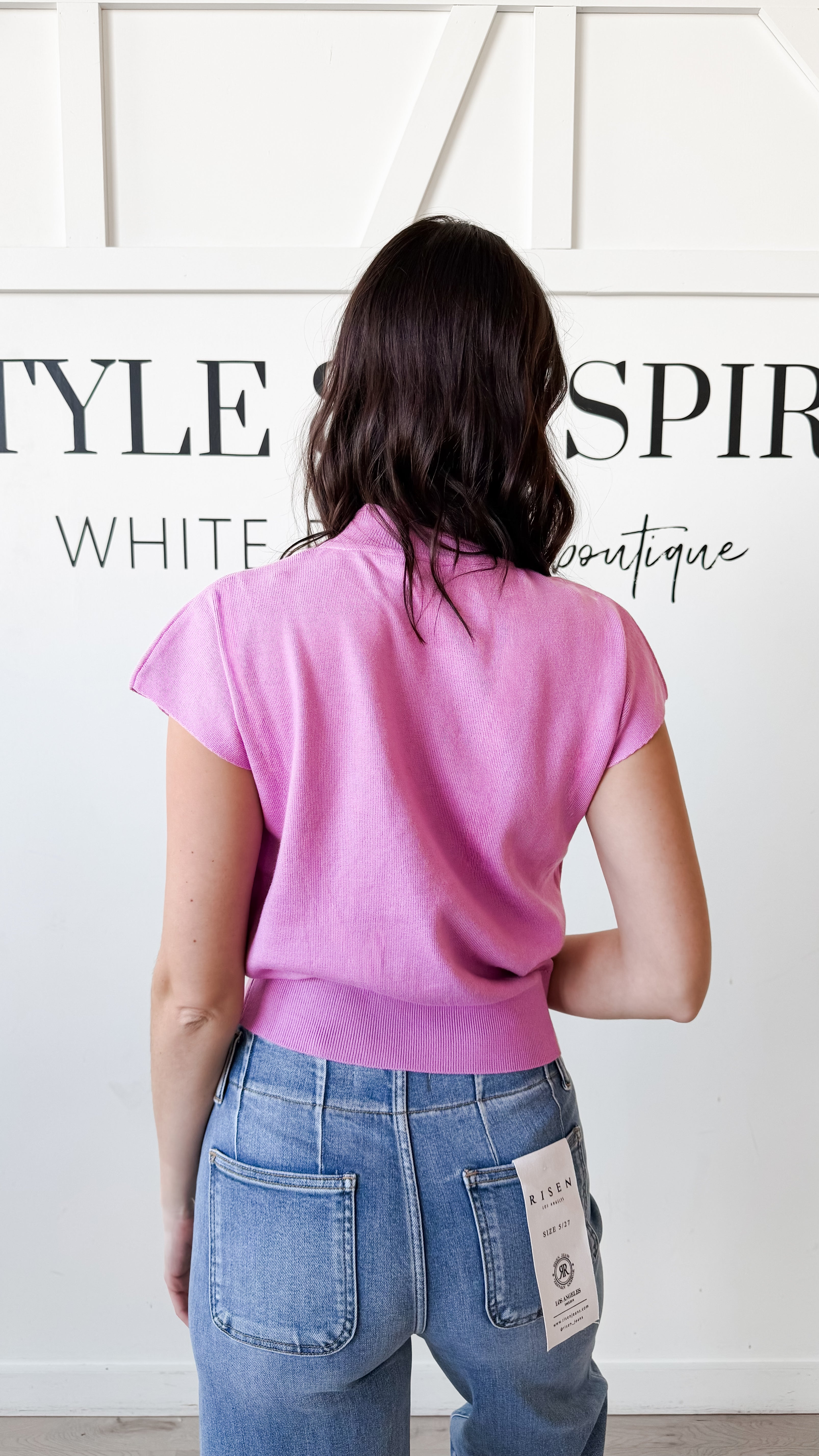 Style: The Evelyn combines understated elegance with everyday wearability. Its soft structured knit provides gentle shape without constraint, while the relaxed fit ensures comfort across body types. The mock neck adds polish, cap sleeves offer refined proportion, and the banded hem creates a polished silhouette. Perfect for layering or wearing solo, this piece transitions seamlessly from casual to professional settings with effortless sophistication.