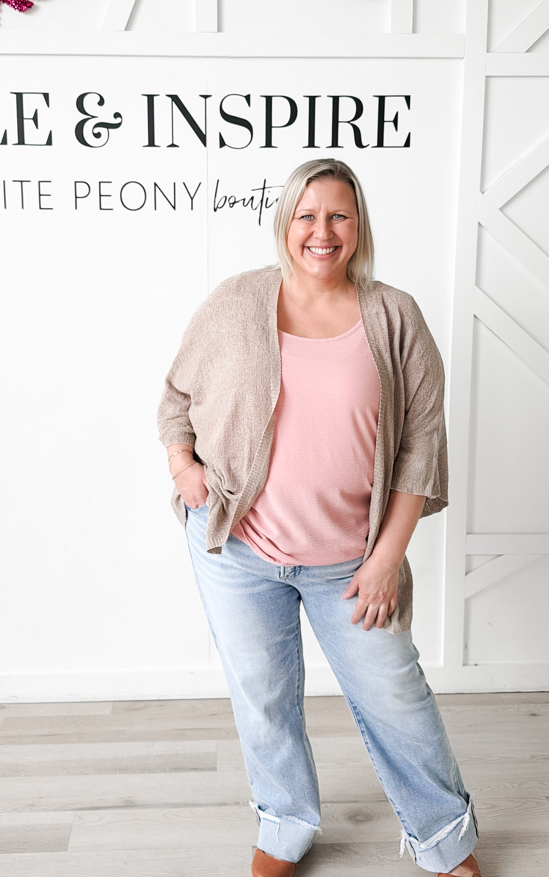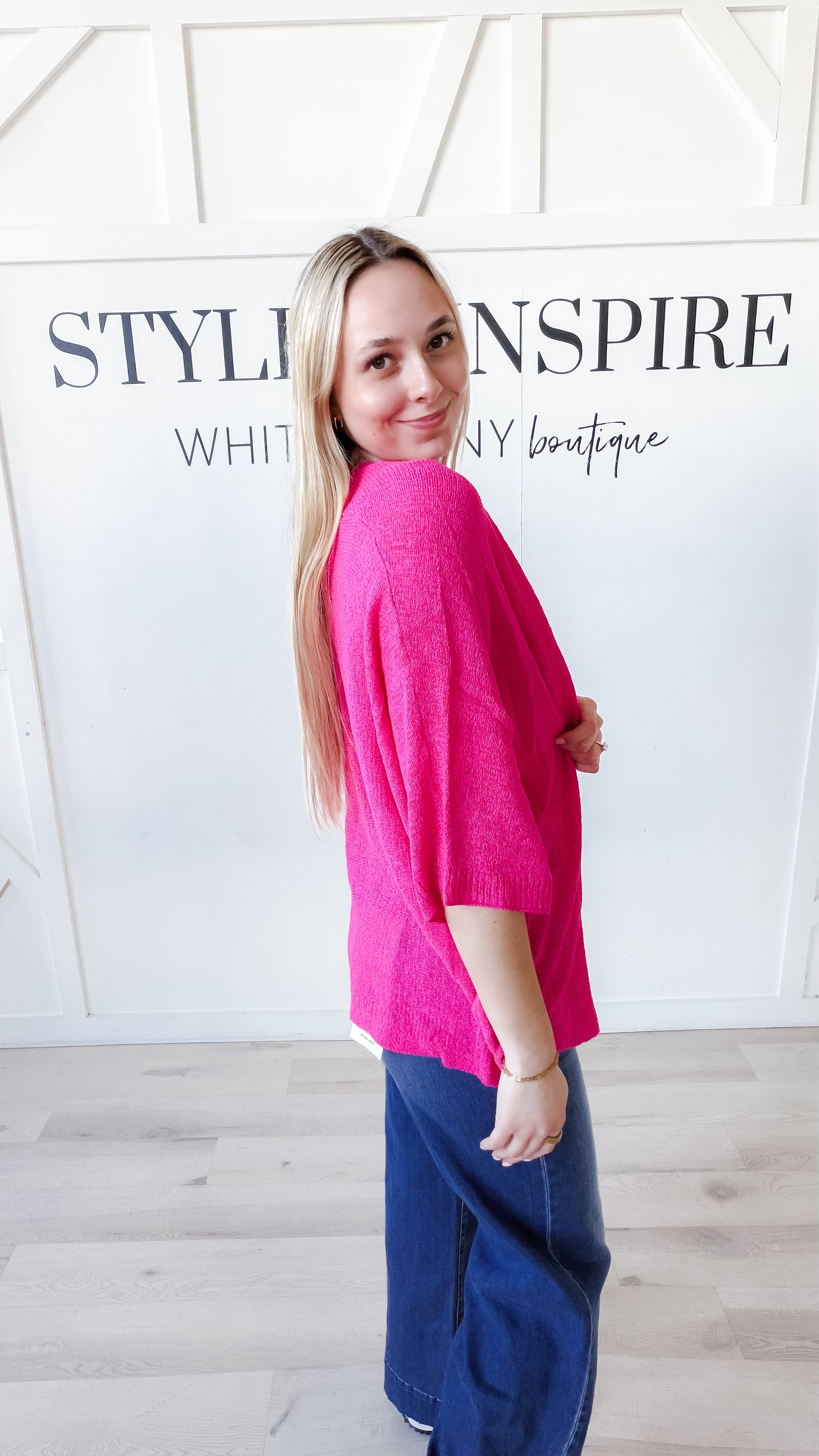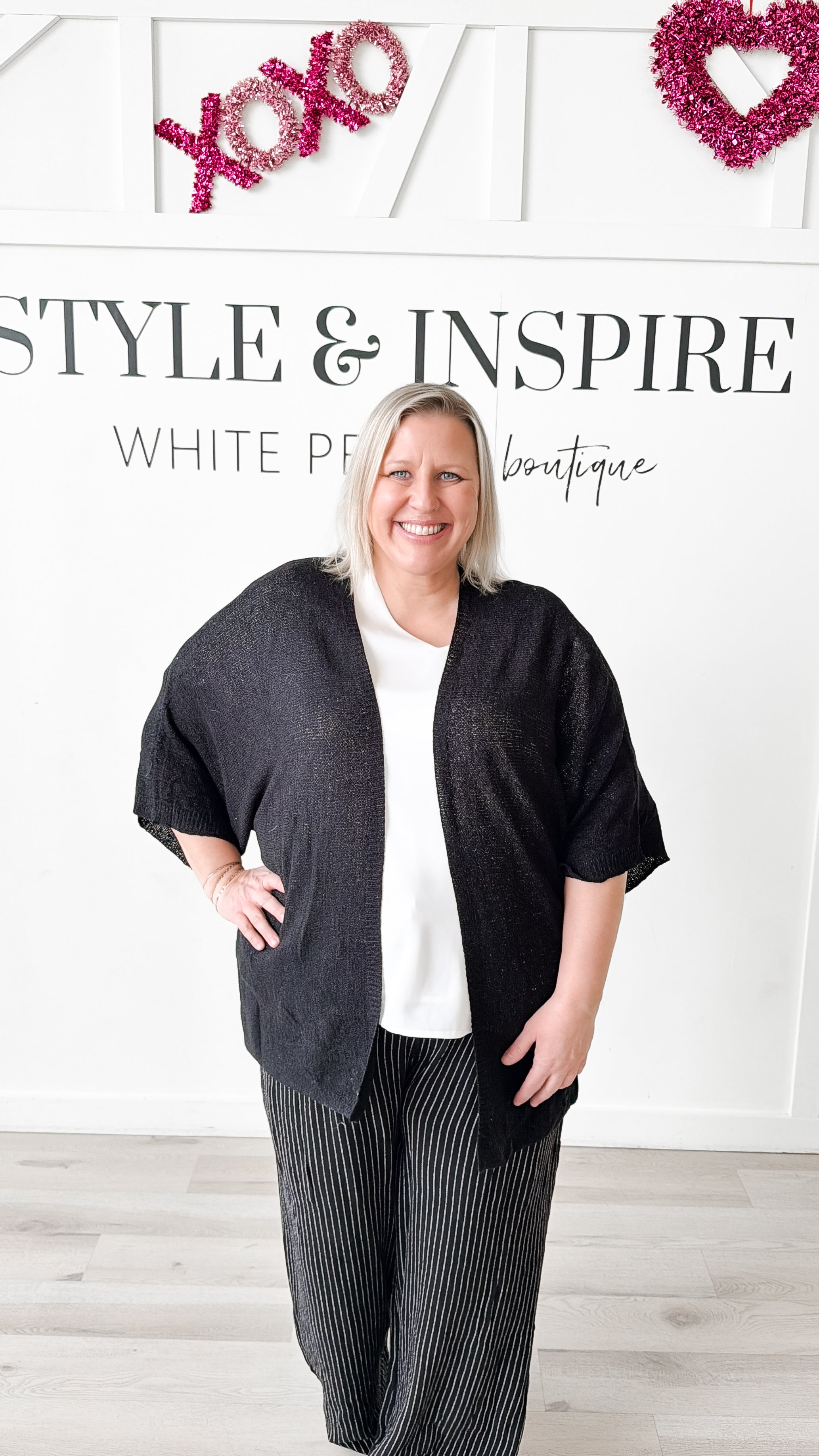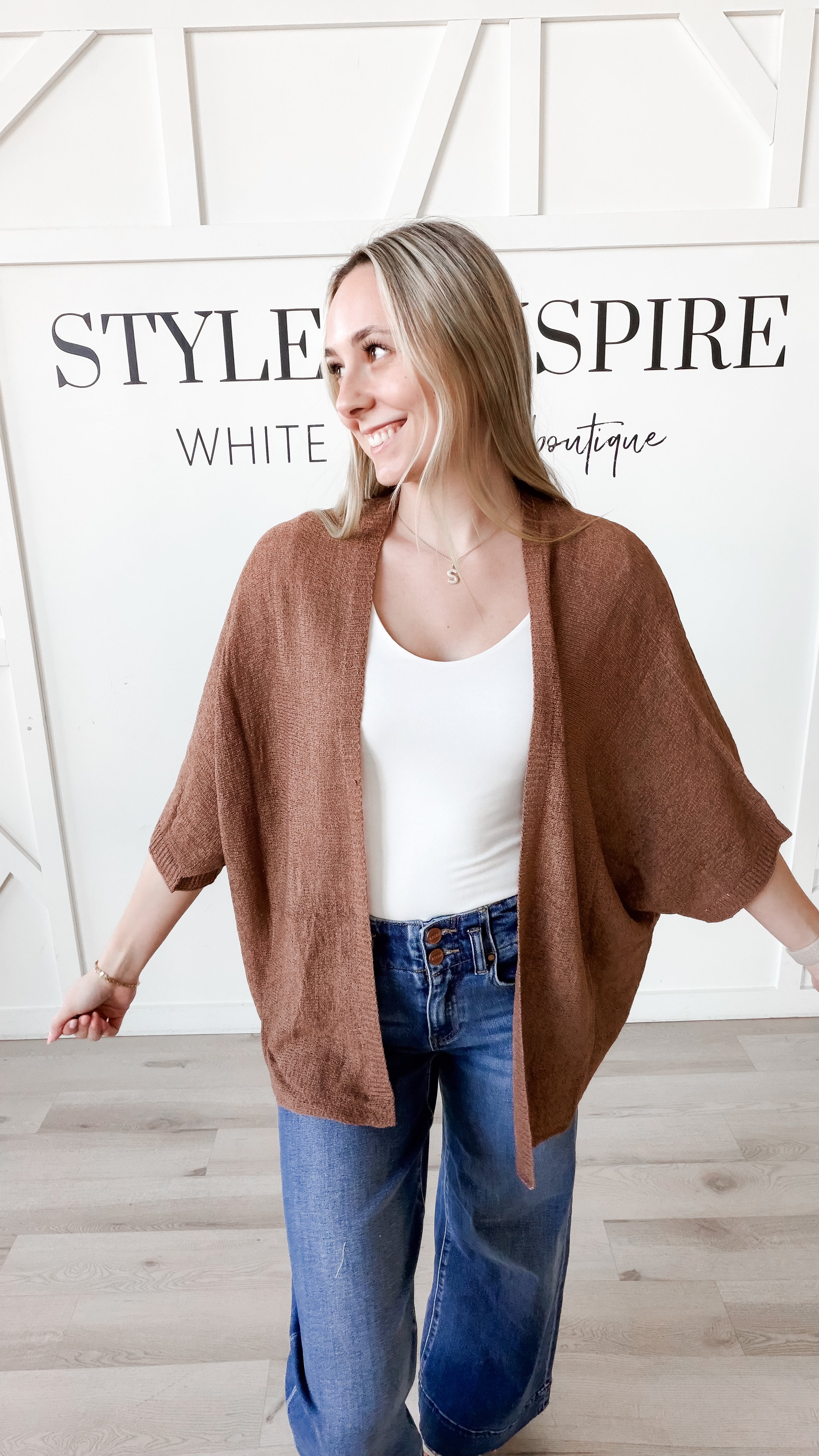 Style: Effortless layering meets contemporary style with the Marie Short Dolman Sleeve Cardigan. This kimono-inspired piece features a relaxed, slouchy silhouette with an open front and generously cut dolman sleeves for unrestricted movement. Crafted from lightweight open knit fabric, it drapes beautifully while remaining breathable. Contrast ribbing at the front edges and arm openings adds refined definition to the design. Perfect for transitional seasons or as a sophisticated cover-up over basics.