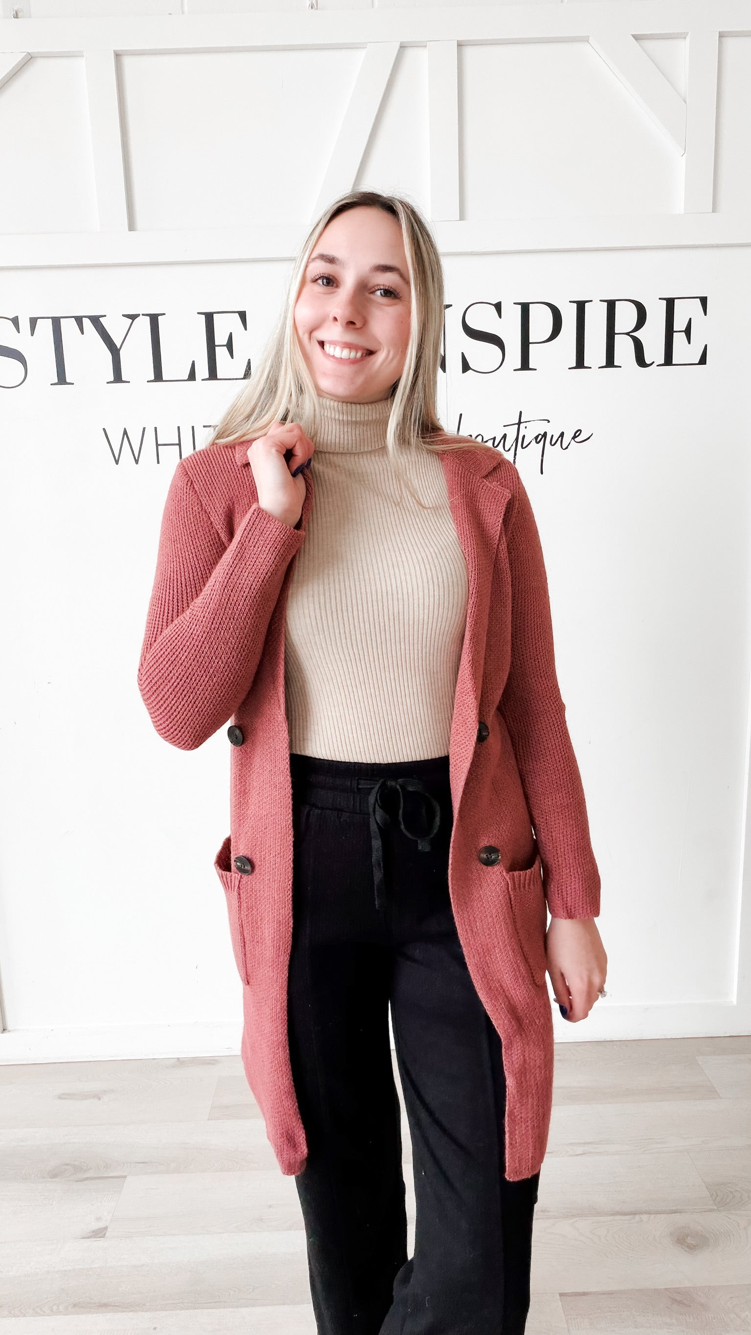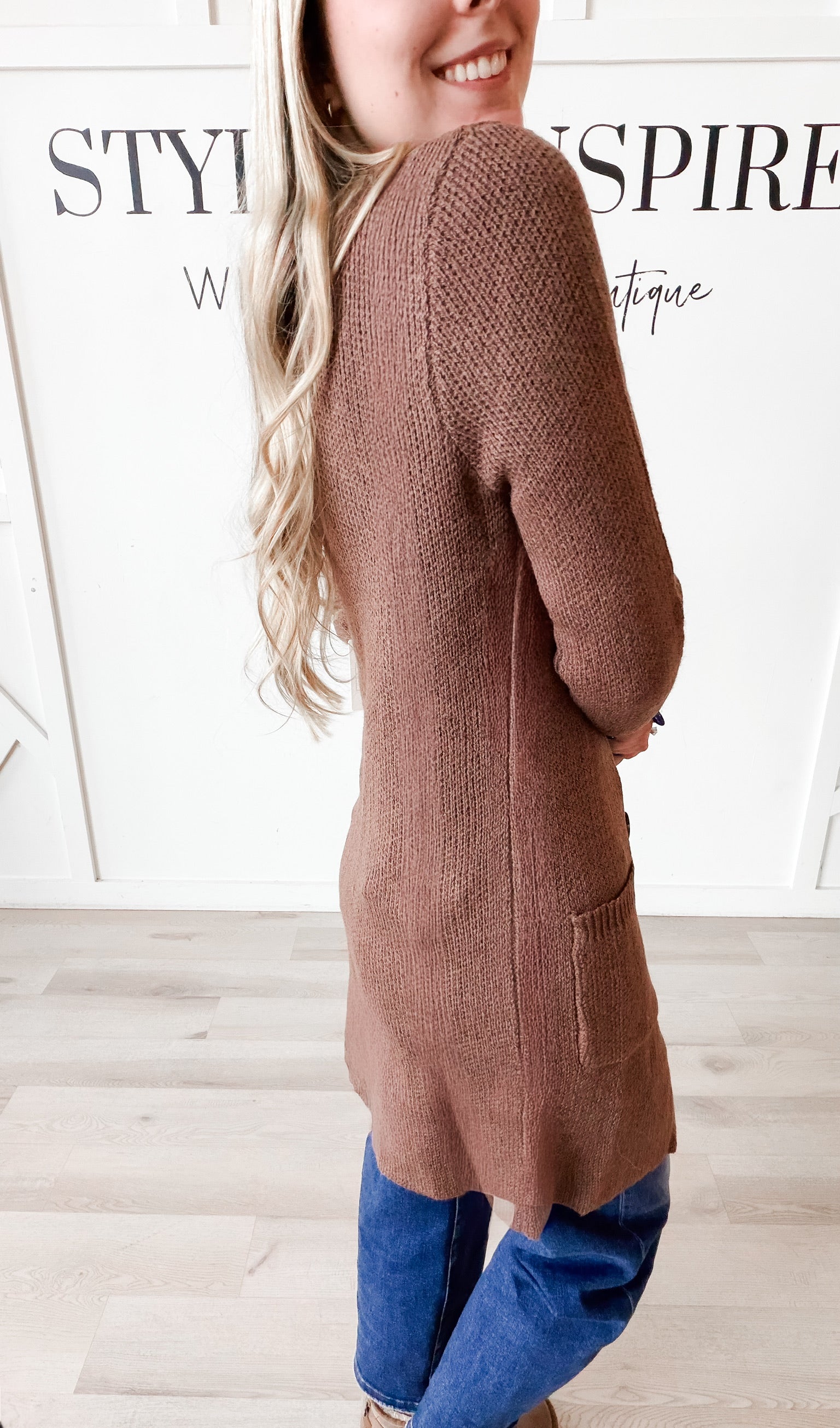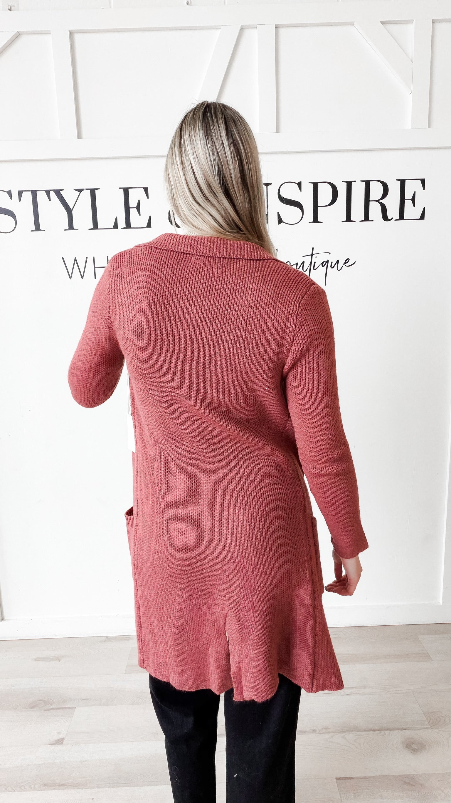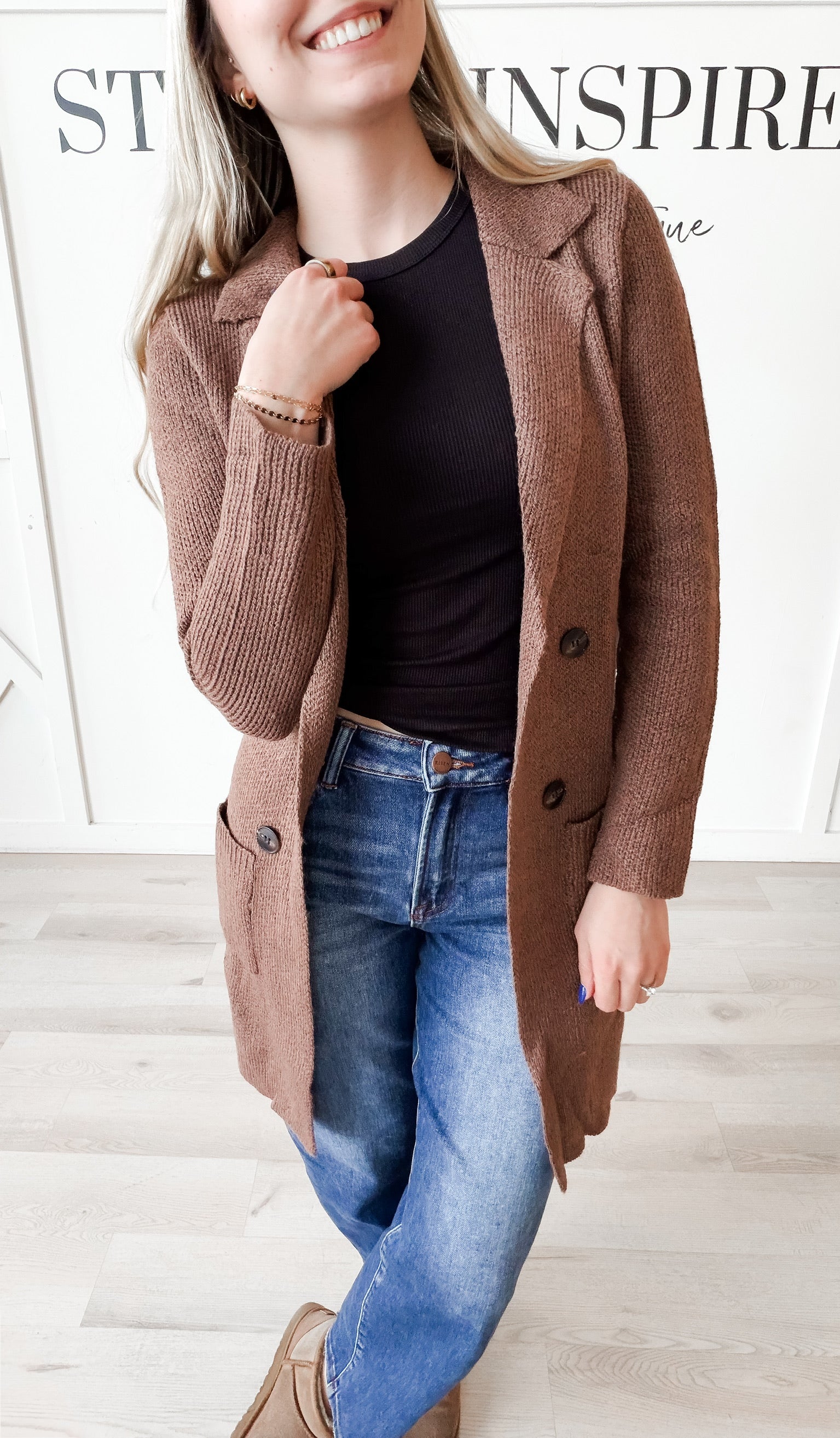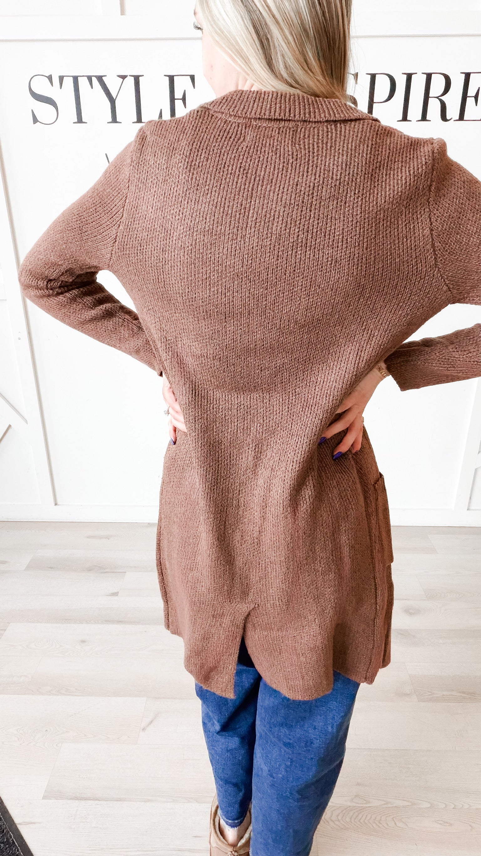 Style: The Jessie cardigan brings effortless sophistication to your everyday wardrobe. Crafted from a soft sweater knit, this long-line silhouette features a notched lapel and open front with subtle button detailing for refined styling versatility. Functional front patch pockets add practical appeal, while long sleeves complete the polished look. Layer it over dresses, tees, or wear solo for a refined, editorial aesthetic.