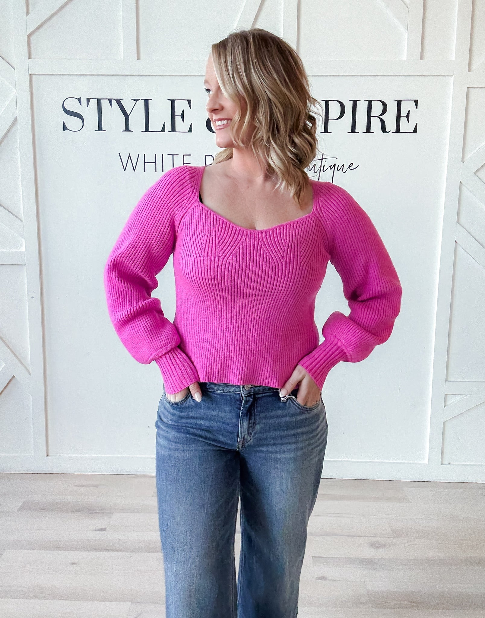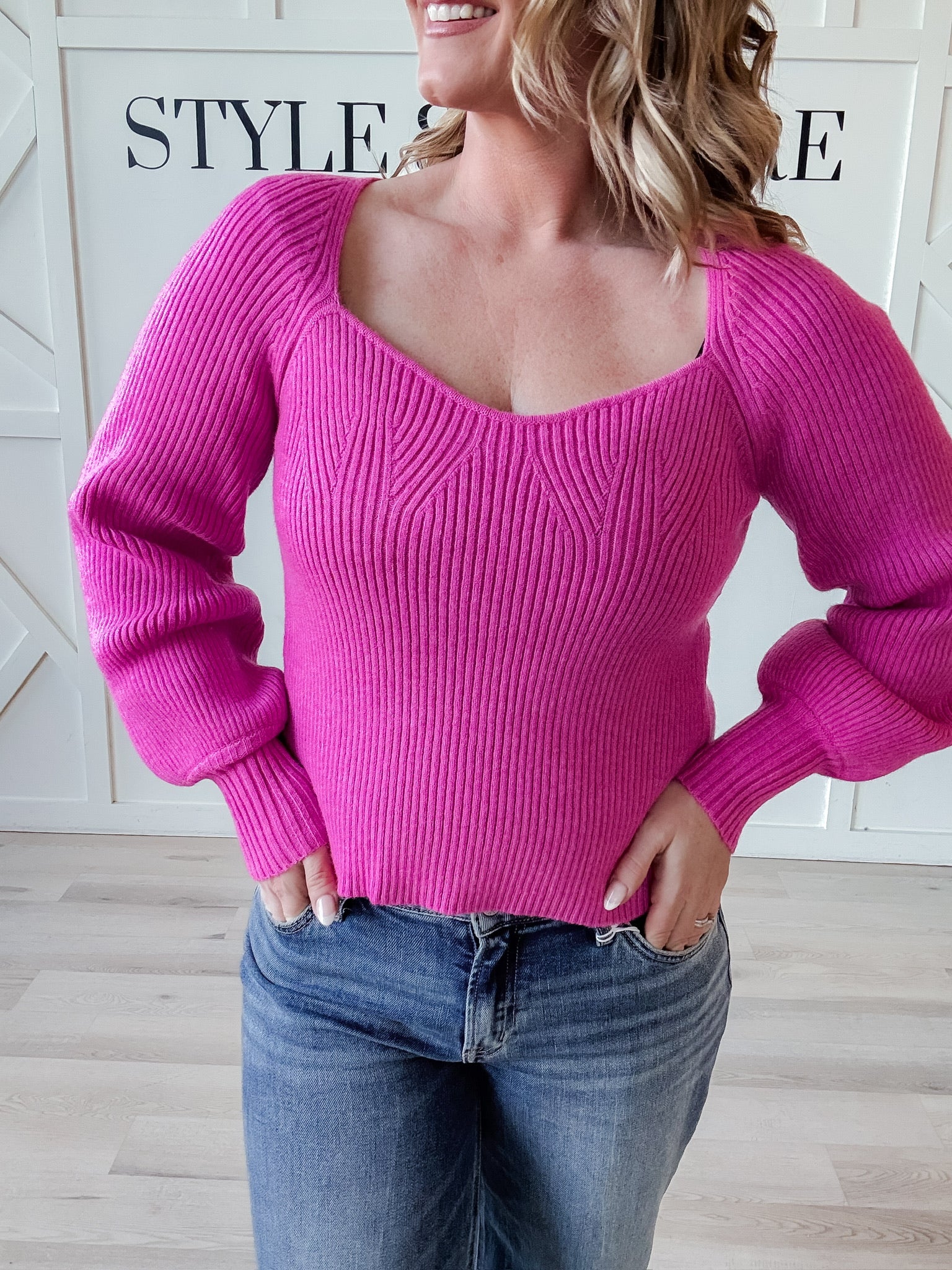 Style: The Tasha Sweater combines timeless elegance with contemporary comfort. Its sweetheart neckline creates a flattering silhouette, while voluminous bishop sleeves add romantic dimension. The fitted vertical ribbed body skims the frame for a refined shape, anchored by snug fitted cuffs that keep the look polished. Crafted from a soft, cozy knit, this piece transitions seamlessly from layered styling to standalone wear, delivering both visual interest and tactile warmth.