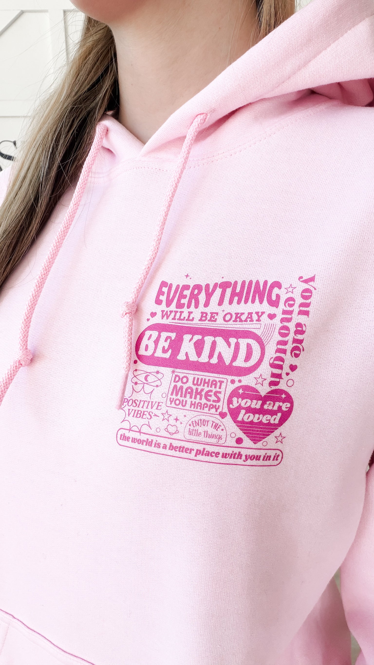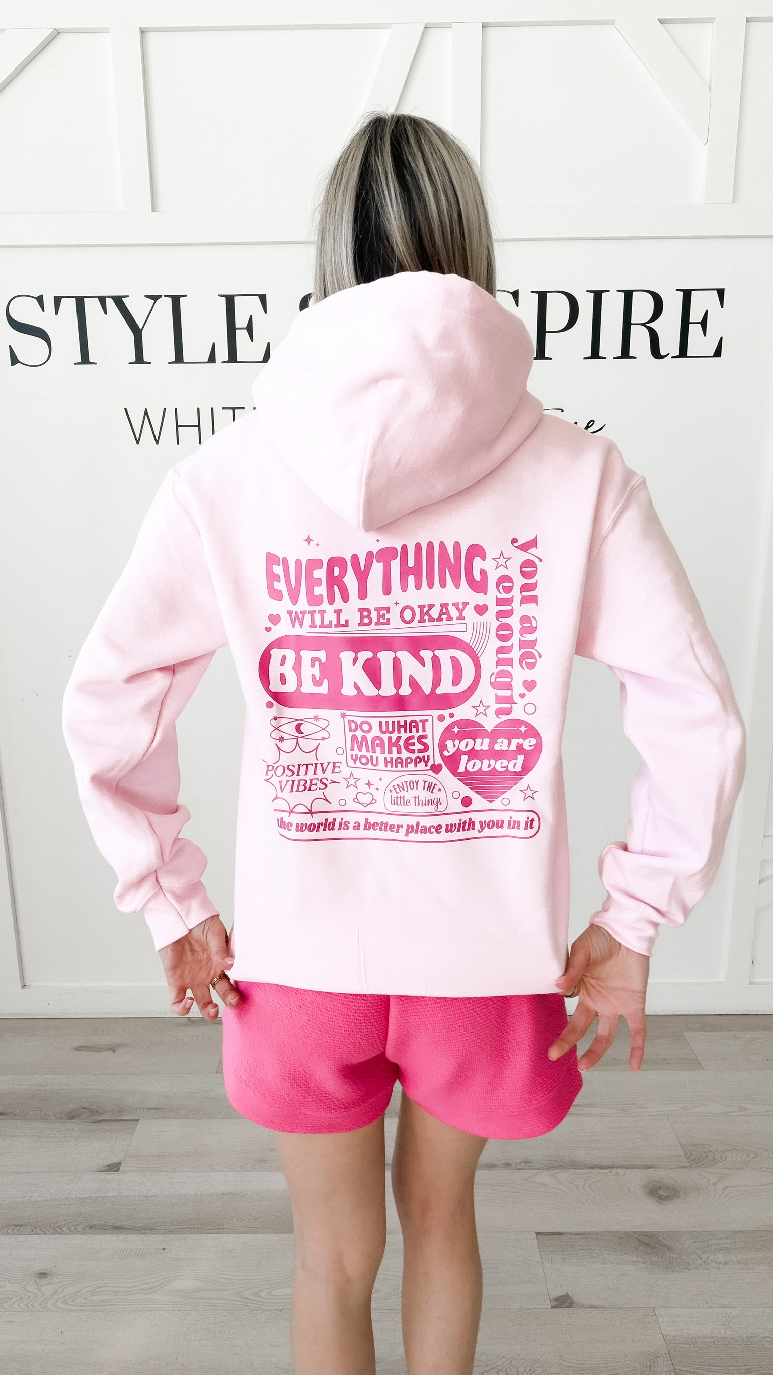 Comfortable, uplifting, and full of positive energy — the Be Kind Graphic Pullover Hoodie is the perfect blend of cozy style and meaningful messaging. Featuring a bold back graphic filled with encouraging reminders, this hoodie spreads positivity everywhere you go.