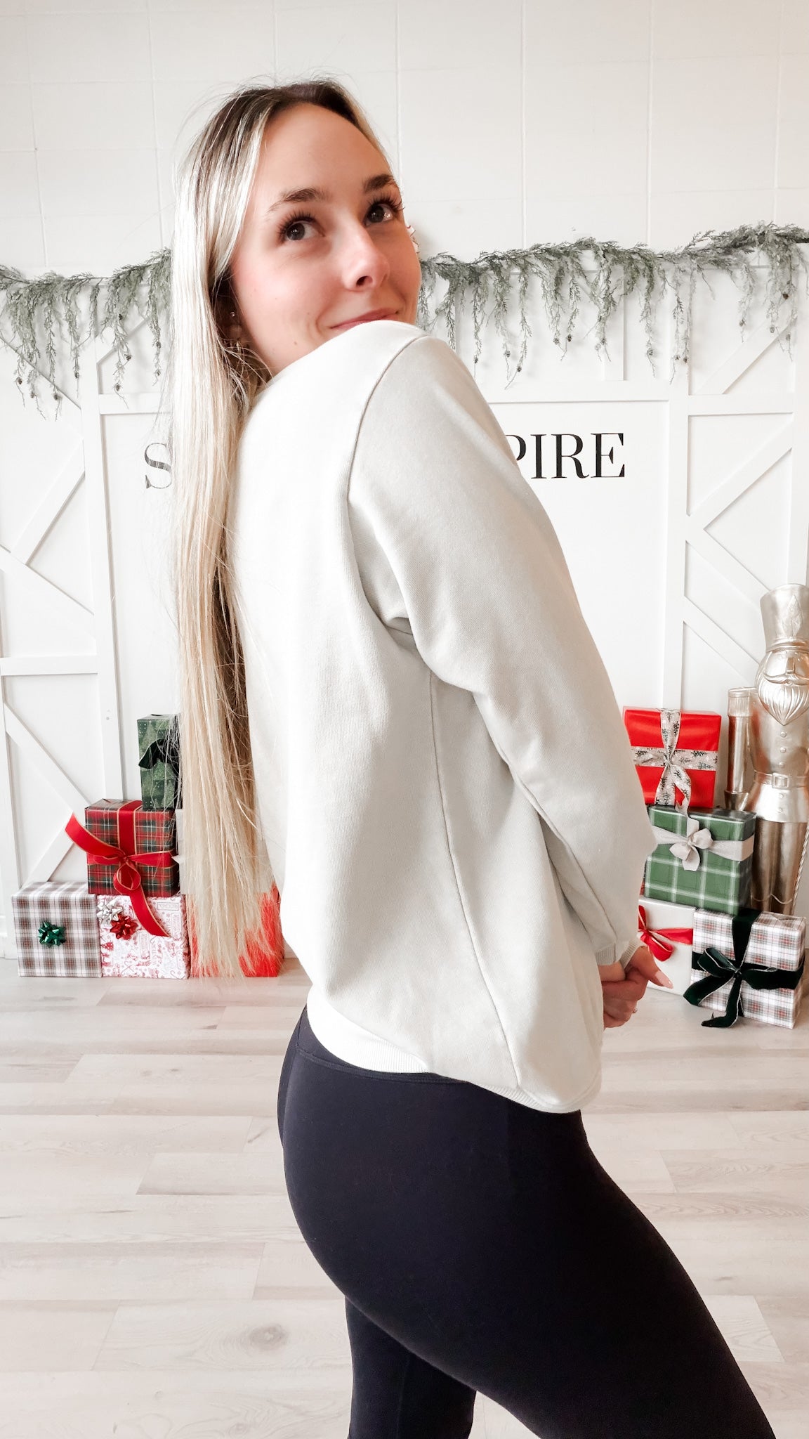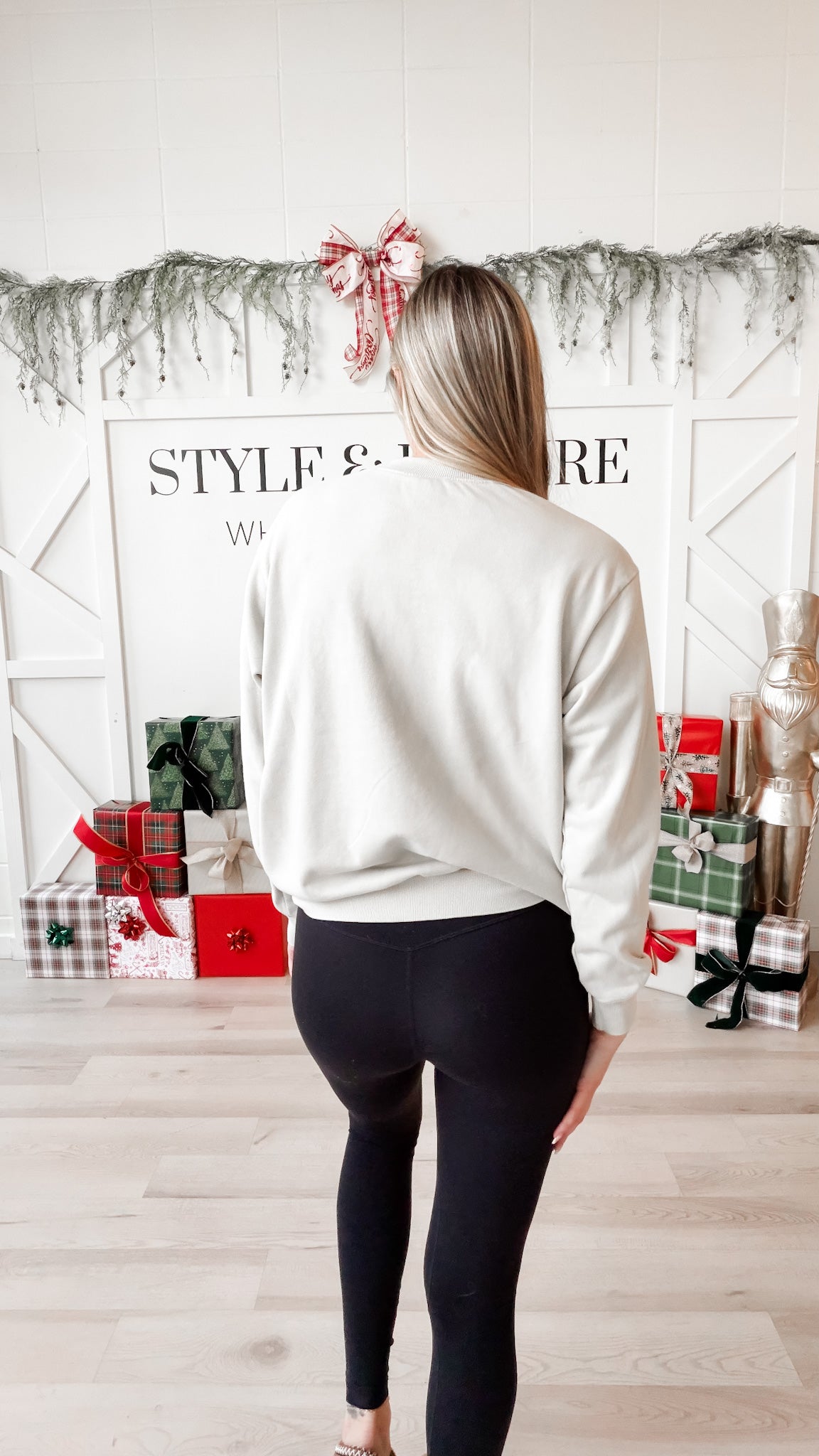 Style: Celebrate the season in comfort with this expertly crafted crewneck sweatshirt. Featuring relaxed drop shoulders and long sleeves, it's designed for effortless style. The mineral-washed fabric offers a soft, lived-in aesthetic while the pre-shrunk construction ensures lasting fit. A striking screen-printed graphic showcases "Have yourself a merry little Cocktail" with two holiday glasses elegantly centered among the lettering. Proudly made in the USA, this sweatshirt combines quality craftsmanship with festive charm—perfect for holiday gatherings or cozy nights in.