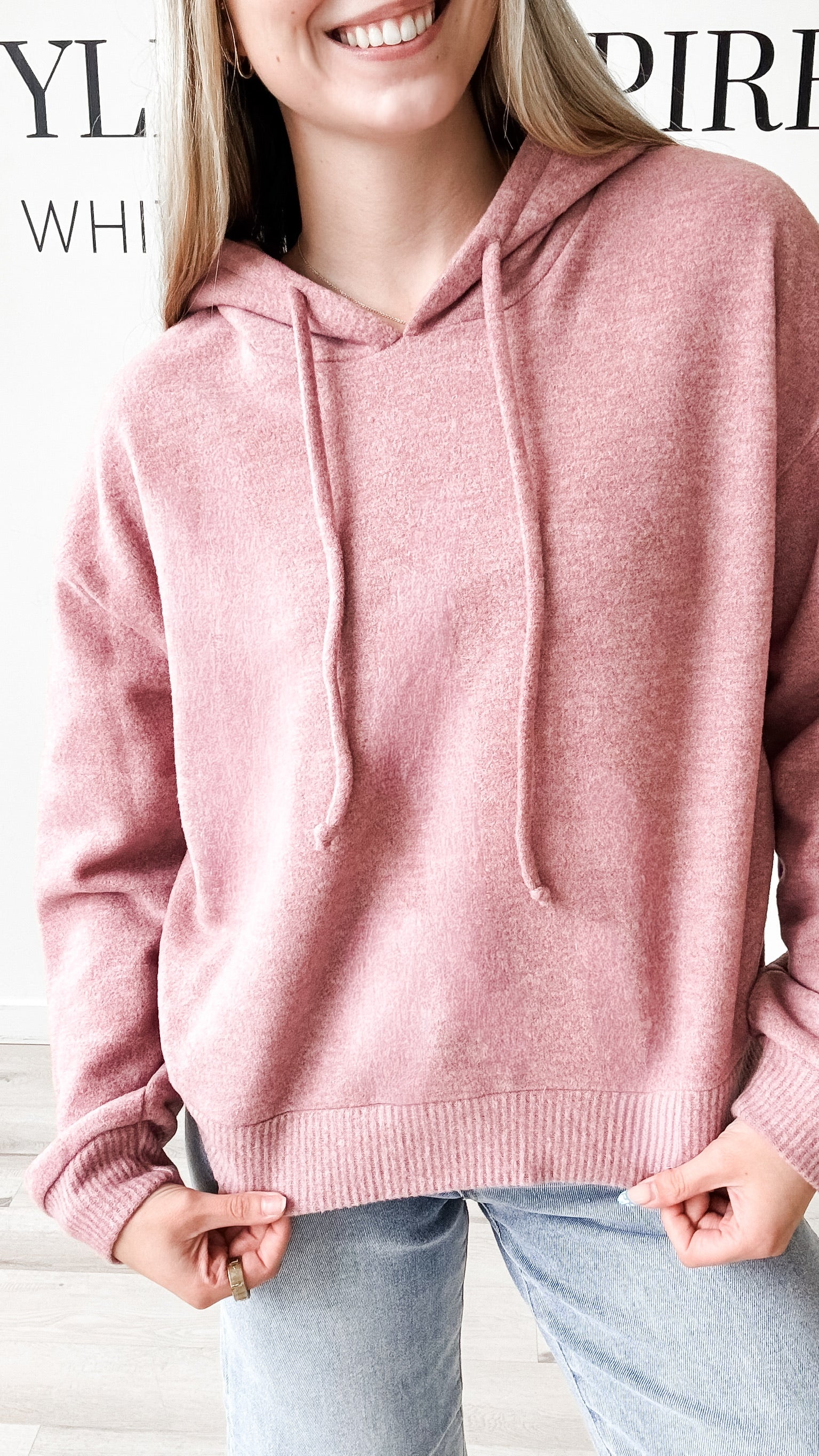 Style: The Karmen Brushed Hooded Top features a lightweight, soft brushed knit fabric designed for comfortable all-day wear. Its hood includes adjustable drawstrings for a personalized fit, while contrast ribbing on the banded cuffs and hem adds subtle detail. With no pockets, this top maintains a streamlined silhouette perfect for layering or casual styling. Unlined for a breathable feel, it balances comfort and a clean, modern look.