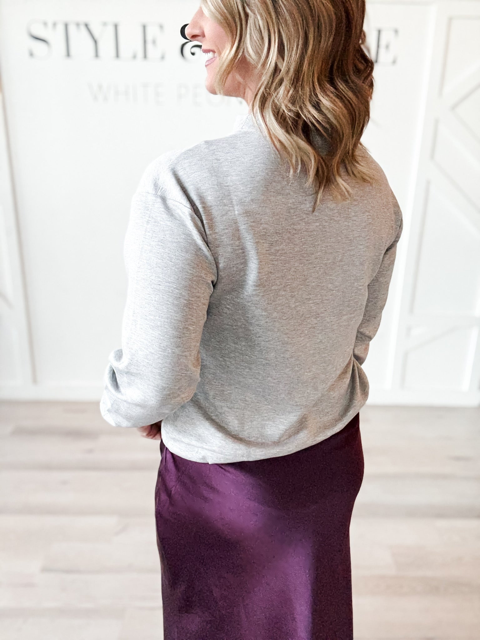 Style: The Kennedy Pullover combines understated sophistication with everyday comfort. Its mock neck and drop shoulders create a modern silhouette, while the relaxed fit accommodates layering and movement. Crafted from soft knit fabric, this piece features long sleeves and a self-tie drawstring hem for adjustable styling versatility. An effortless essential that transitions seamlessly from casual to polished occasions.