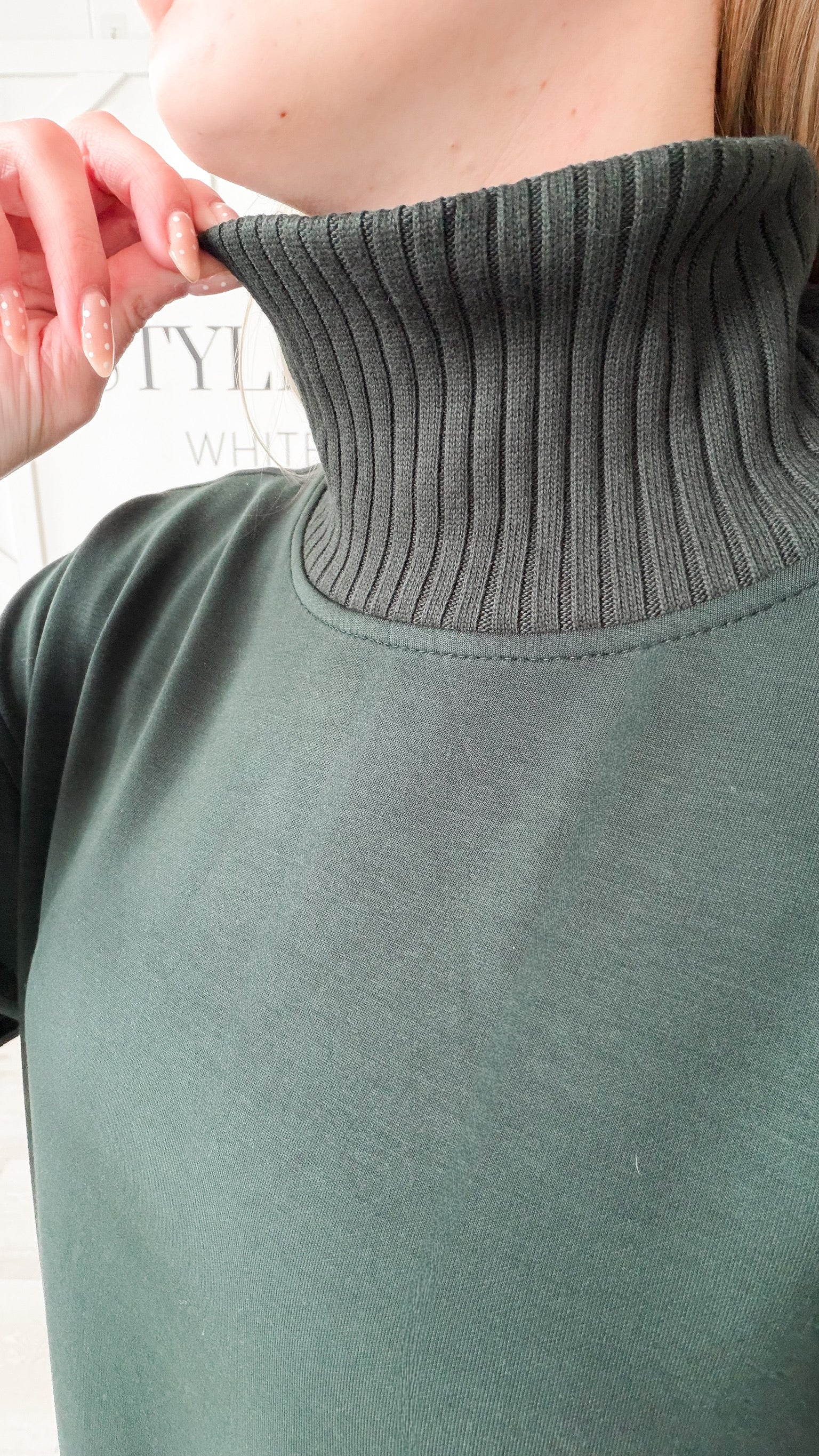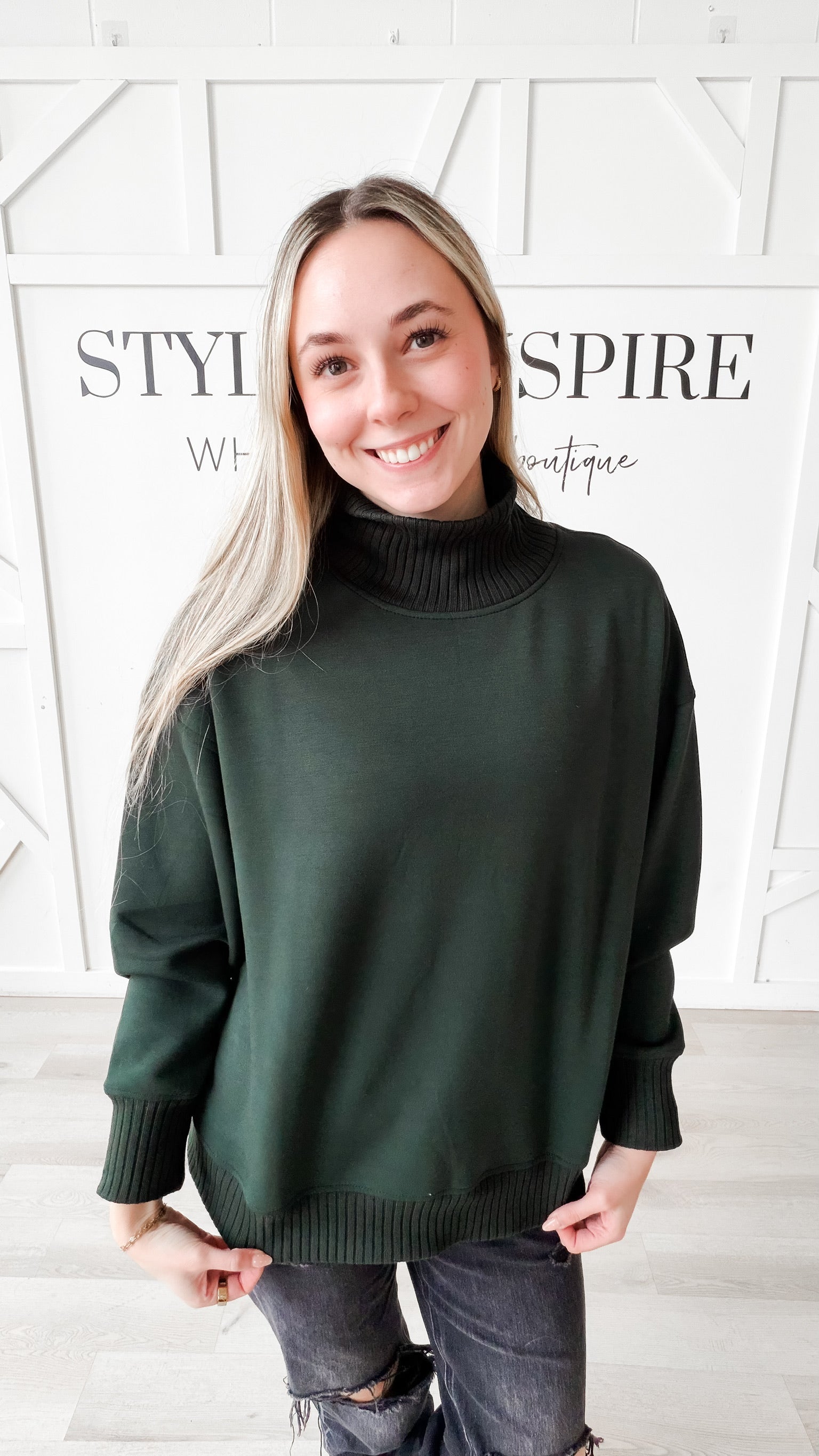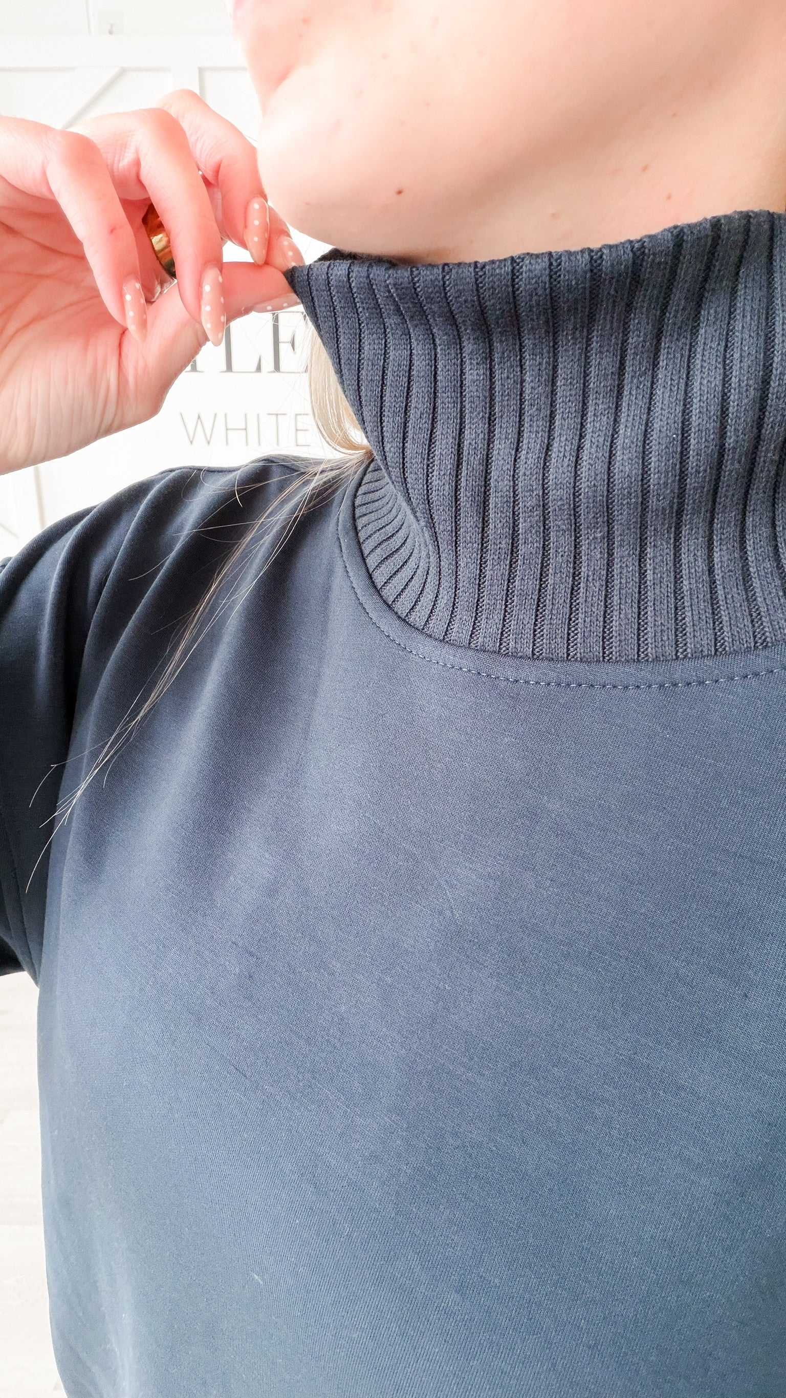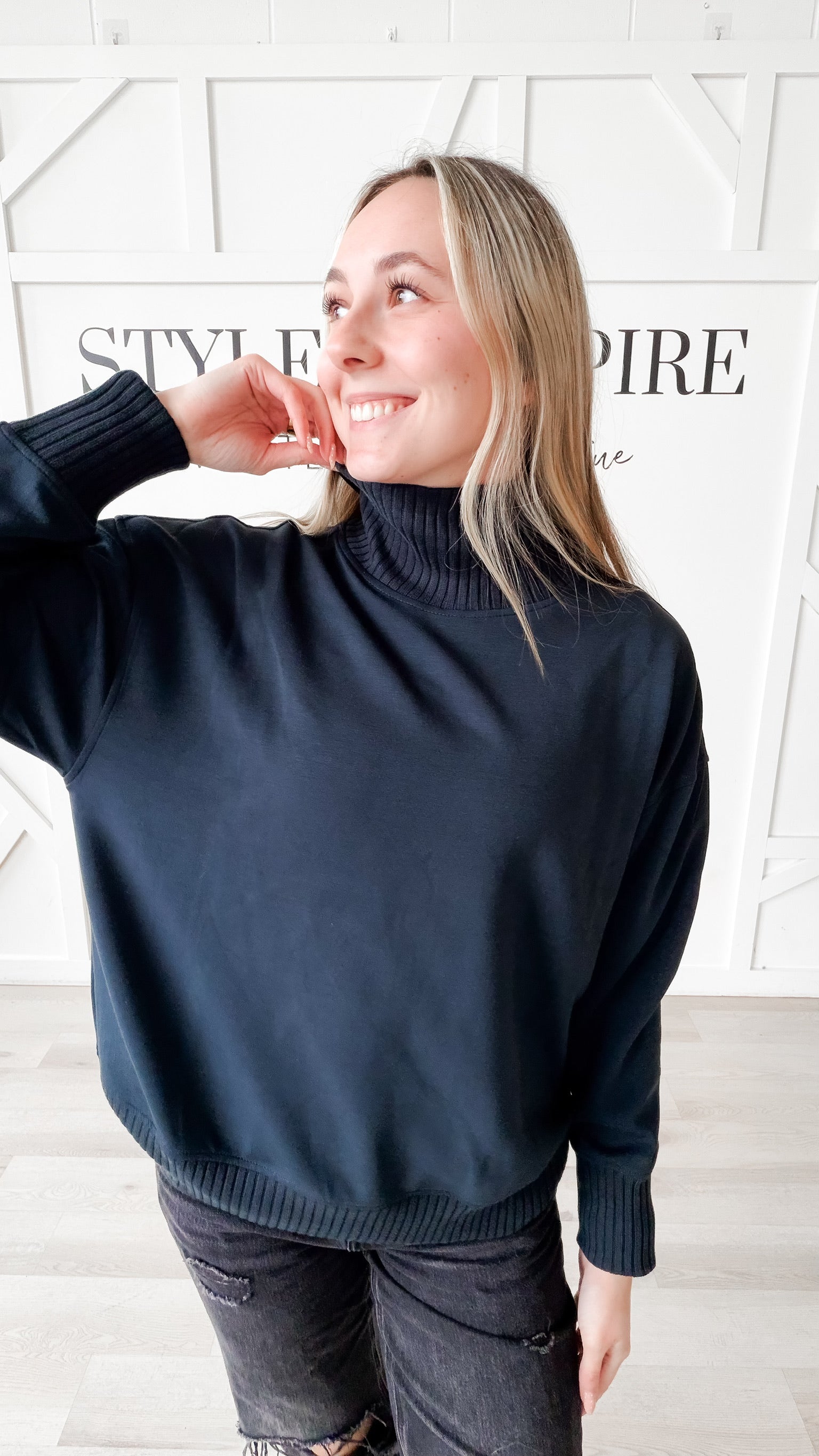Style: The Maxine Mock Neck combines understated elegance with contemporary silhouette. Crafted from luxe modal fabric, this piece features a refined mock neck with contrast ribbing that frames the neckline while coordinating cuffs and hem add polished definition. Drop shoulders create an effortlessly relaxed fit that works across seasons and styling preferences. Long sleeves provide versatile layering potential. A wardrobe essential that transitions seamlessly from casual to refined occasions.