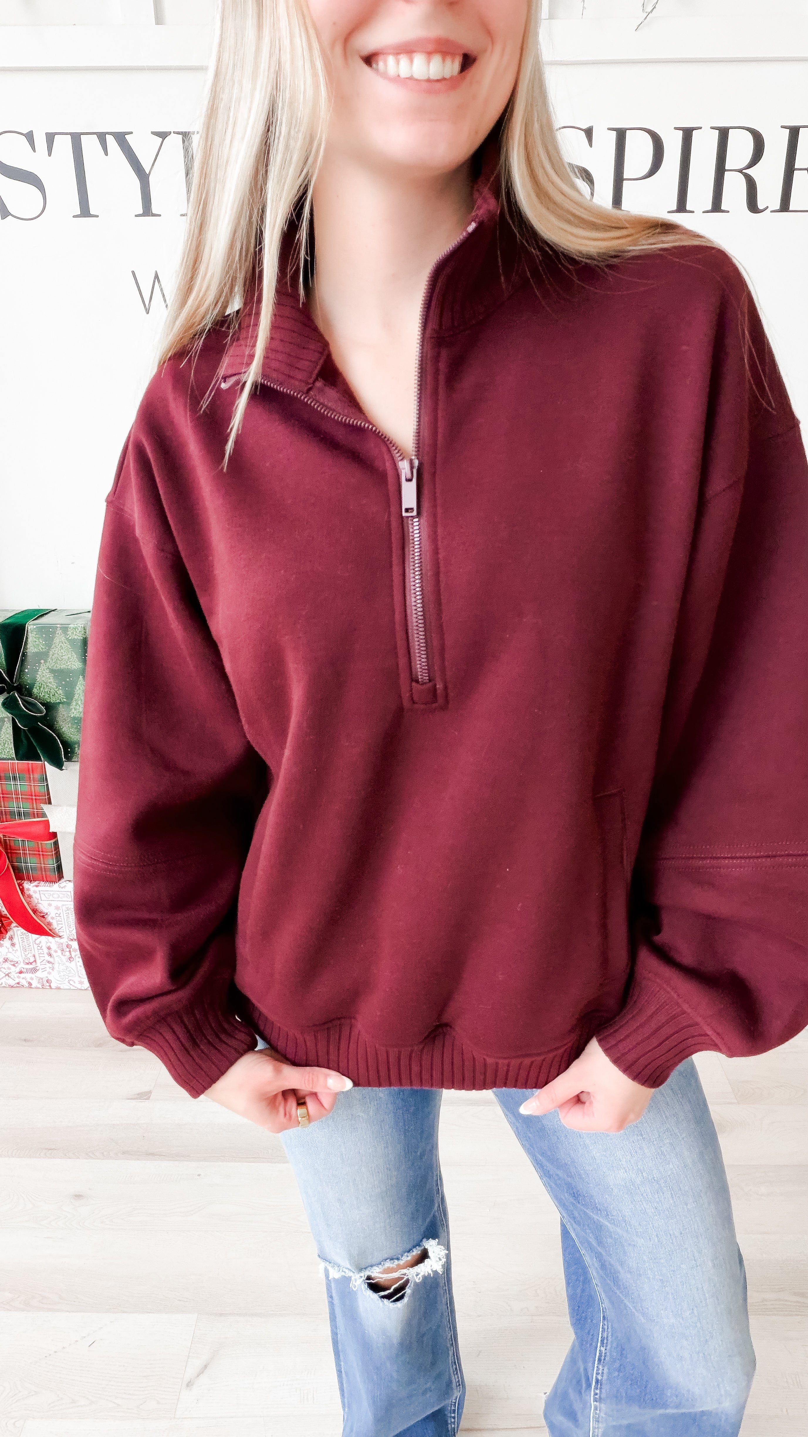 Style: The Payton Fleece Half Zip Top combines elevated comfort with refined design details. Crafted from premium French terry with a brushed interior, this piece delivers exceptional softness against the skin. The mock neck and half-zip front provide versatile styling options, while drop shoulders create a contemporary silhouette. Functional kangaroo pockets offer practical storage, and wide ribbing at the collar, cuffs, and hem ensures a polished finish that resists stretching. An ideal layering piece for transitional seasons or casual everyday wear.