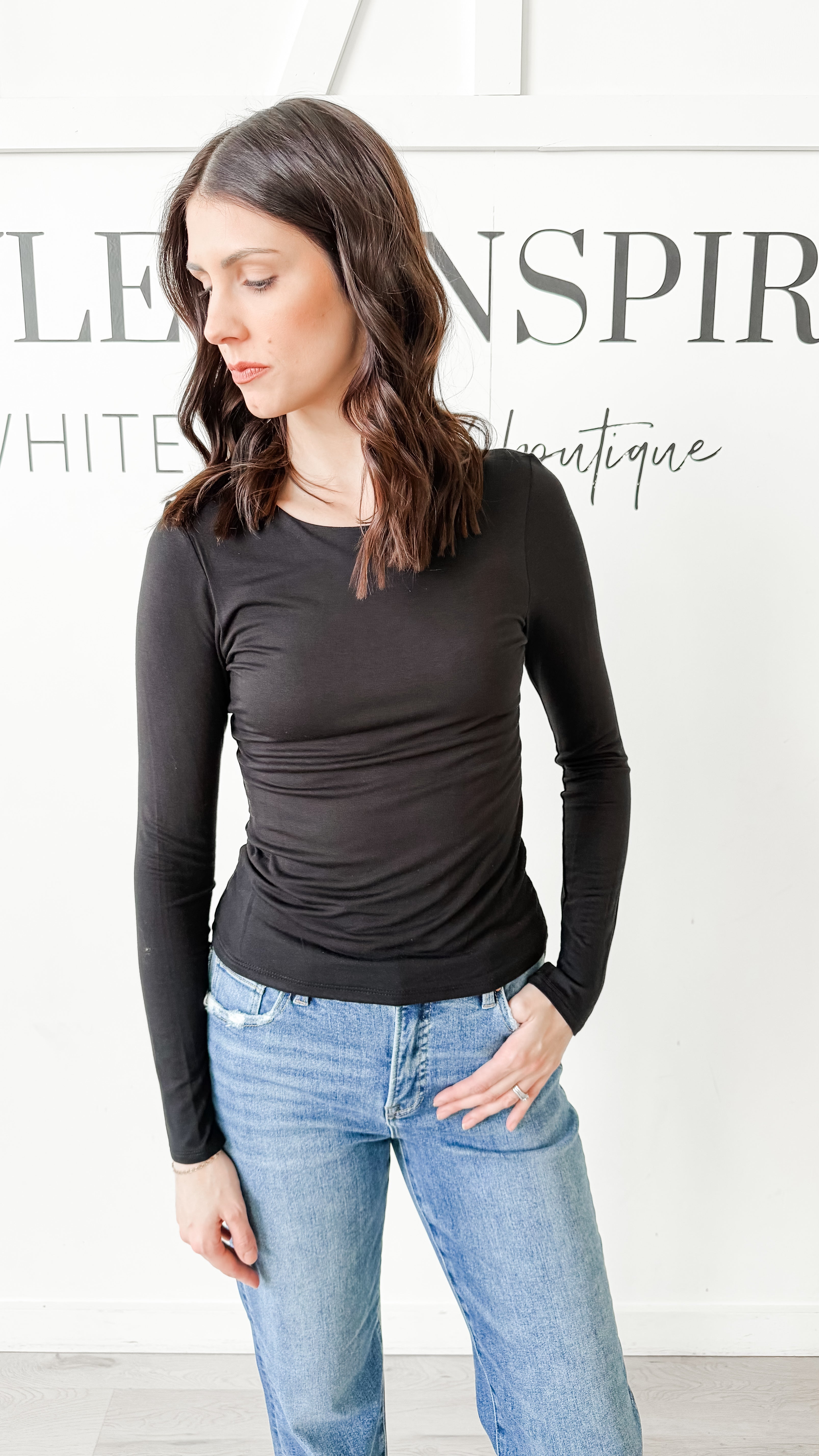 Style: Expertly crafted and designed, the Tiffany Dbl Long Sleeve Top offers superior comfort and style. The double layer front creates a flattering silhouette, while the round neck and long sleeves provide versatility. Made from a lightweight, super soft, and stretchy fabric, this top is perfect for all-day wear.
