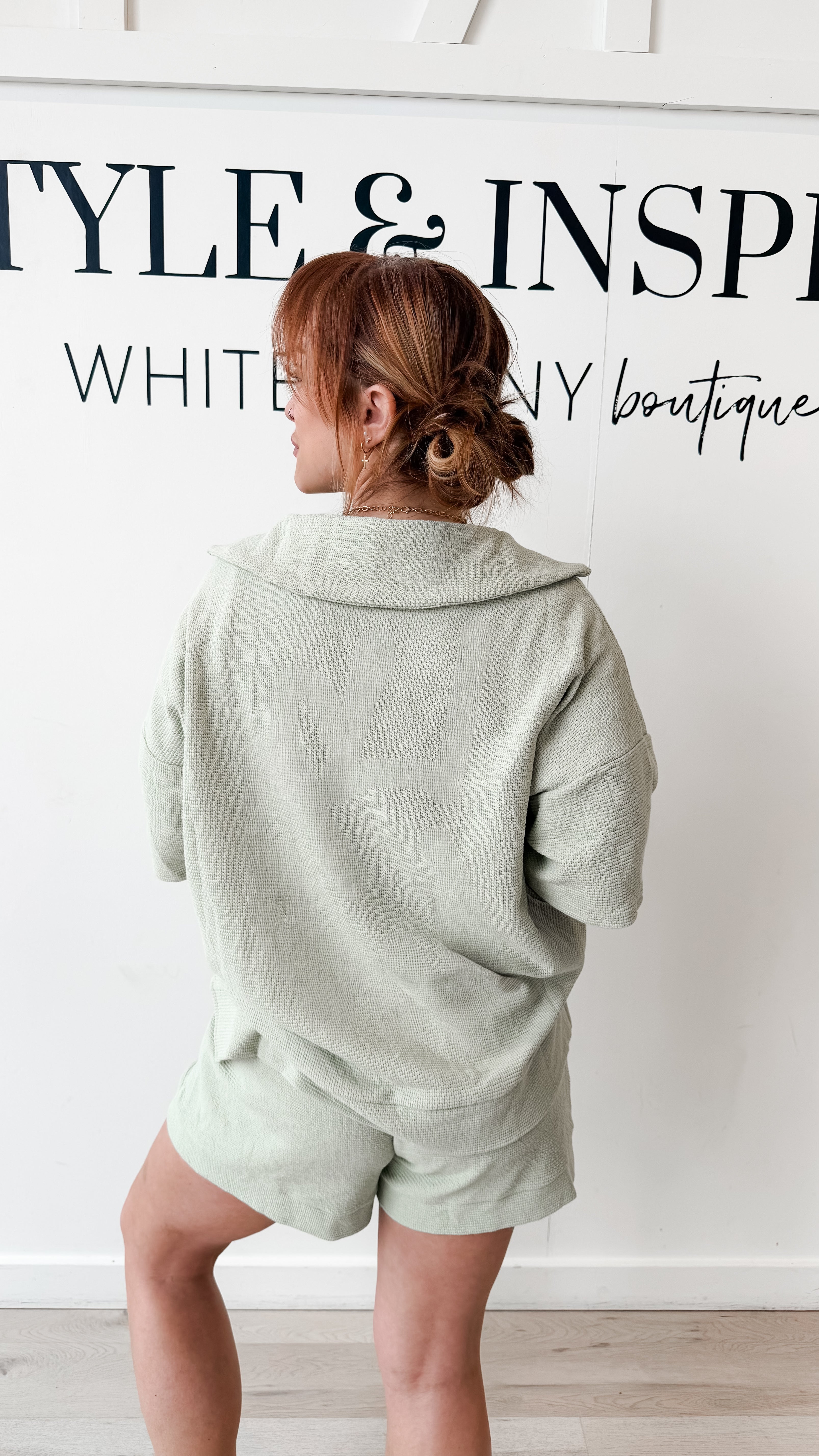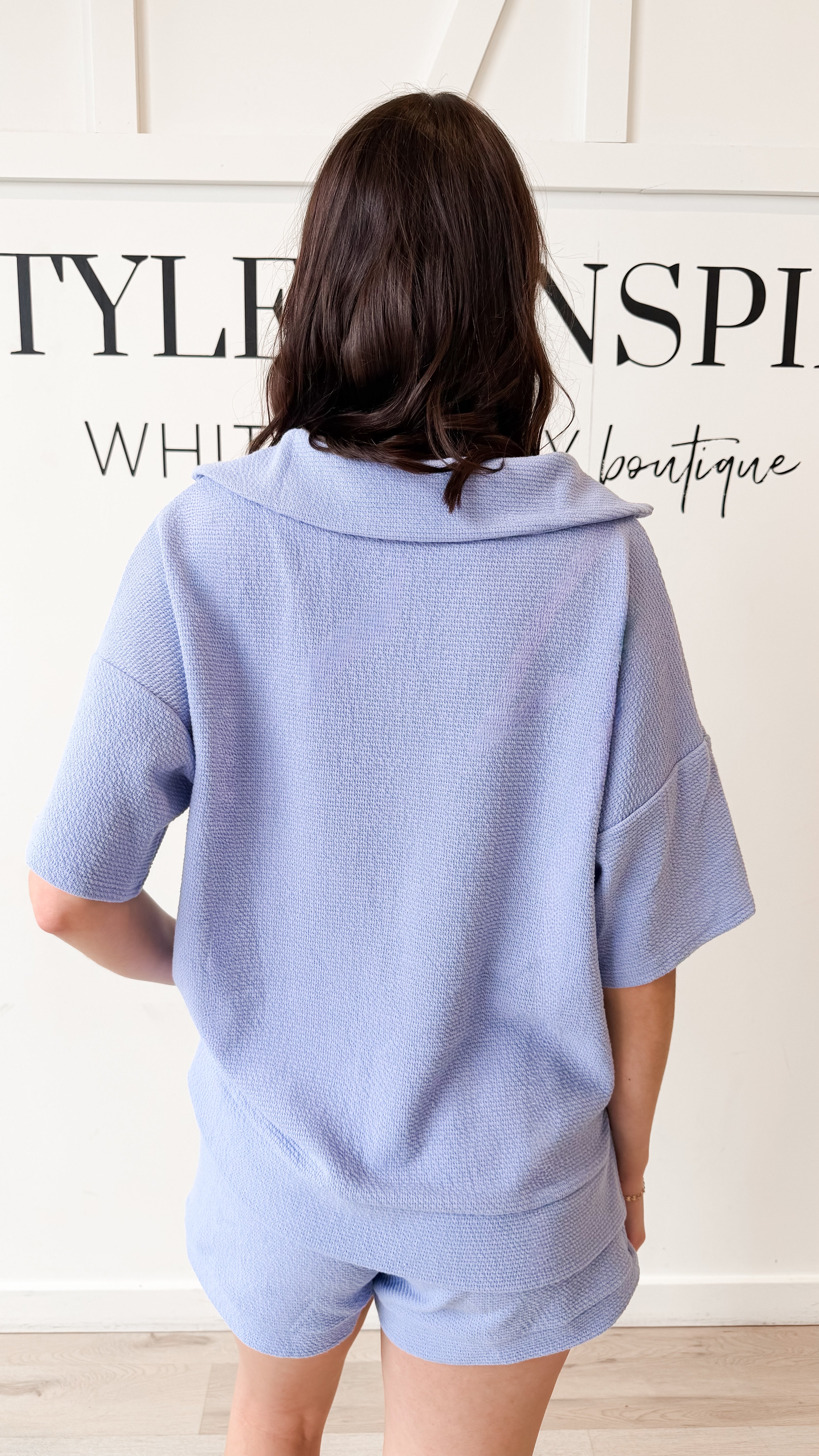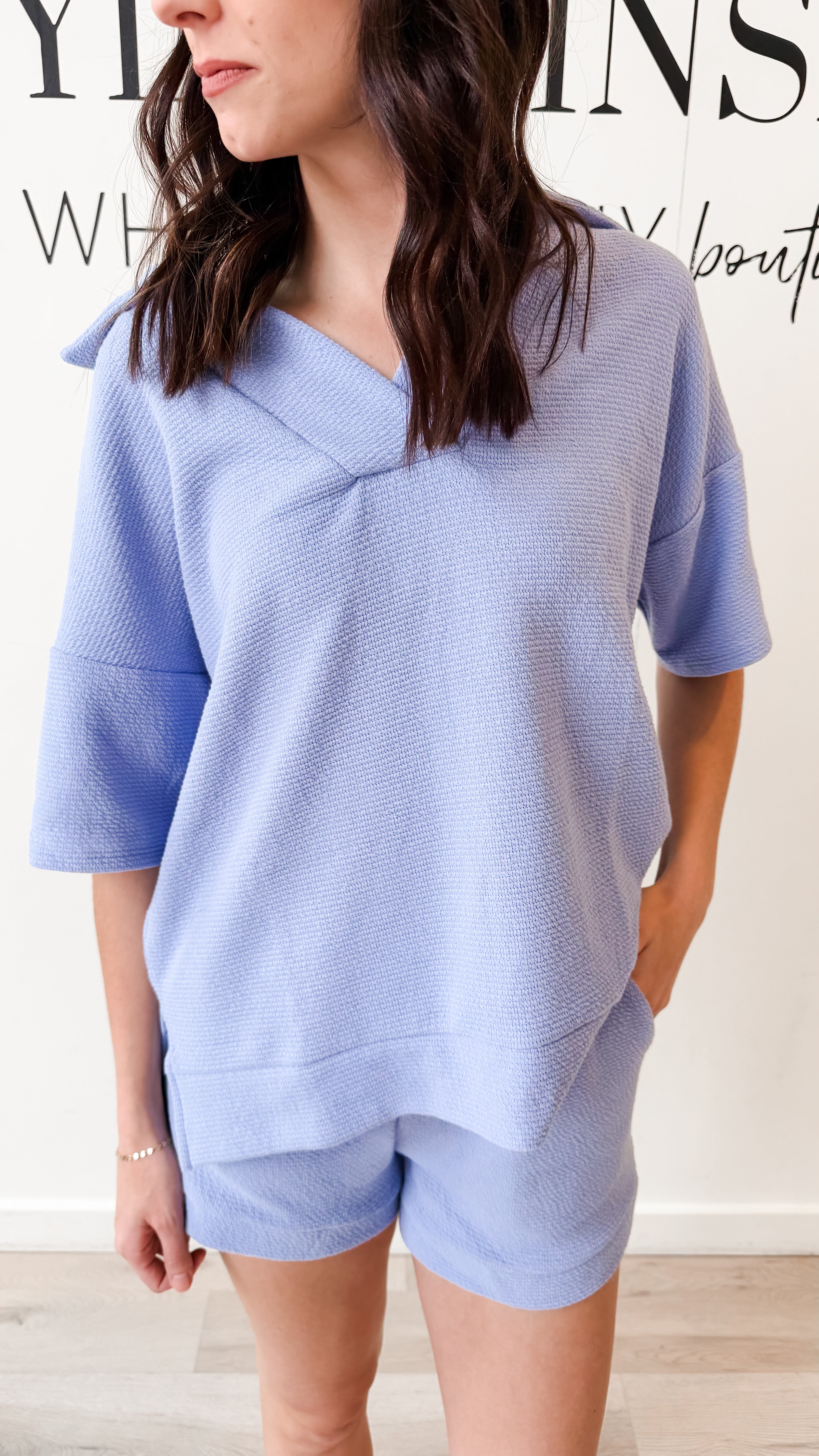 Style: Soft, effortless, and just the right amount of elevated casual. This textured knit top features a relaxed silhouette with a flattering collared split-V neckline that gives it that easy “throw on and go” polish.