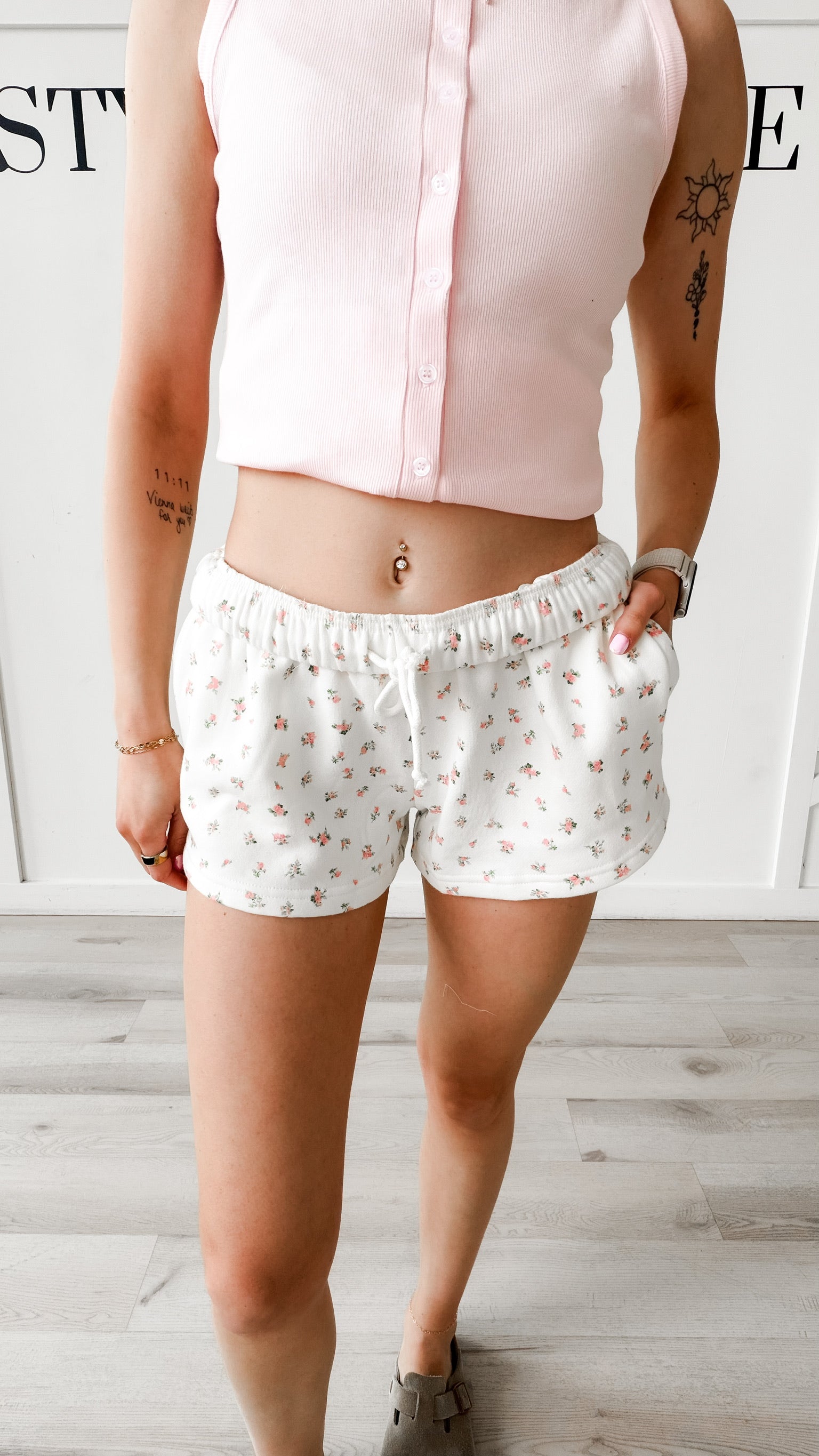 Sweet, soft, and made for easy days — these shorts bring a touch of charm to your everyday look. The delicate ditsy floral print gives them a feminine feel, while the relaxed fit keeps them comfy and effortless.