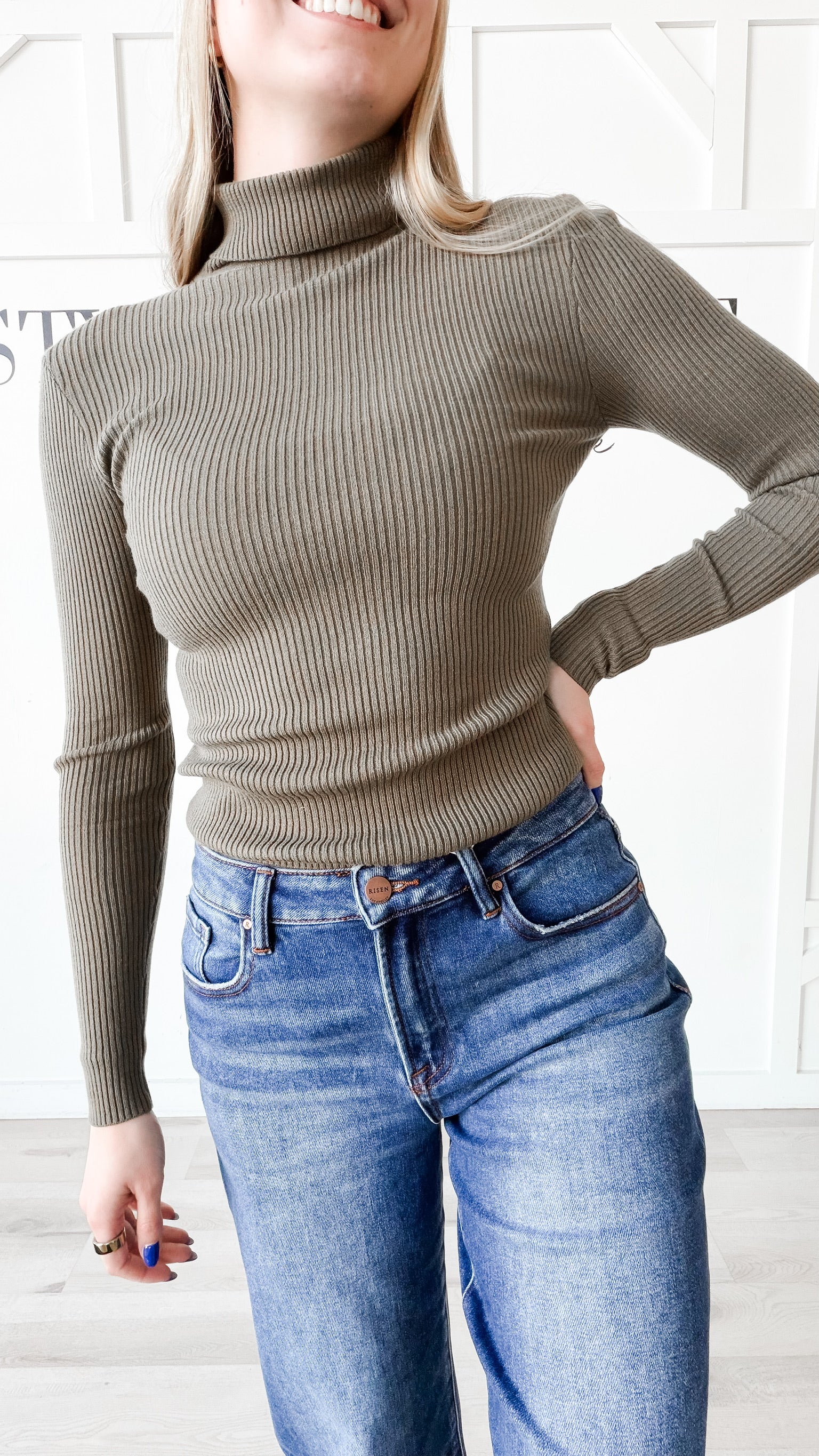 Style: Elevate your essentials with the Rhianna Fitted Rib Turtleneck, a wardrobe staple crafted from premium ribbed knit. The form-fitting silhouette hugs your frame with refined precision, while long sleeves provide versatile layering for any season. This turtleneck transitions seamlessly from casual to polished, offering timeless sophistication that pairs effortlessly with everything from tailored trousers to your favorite denim.