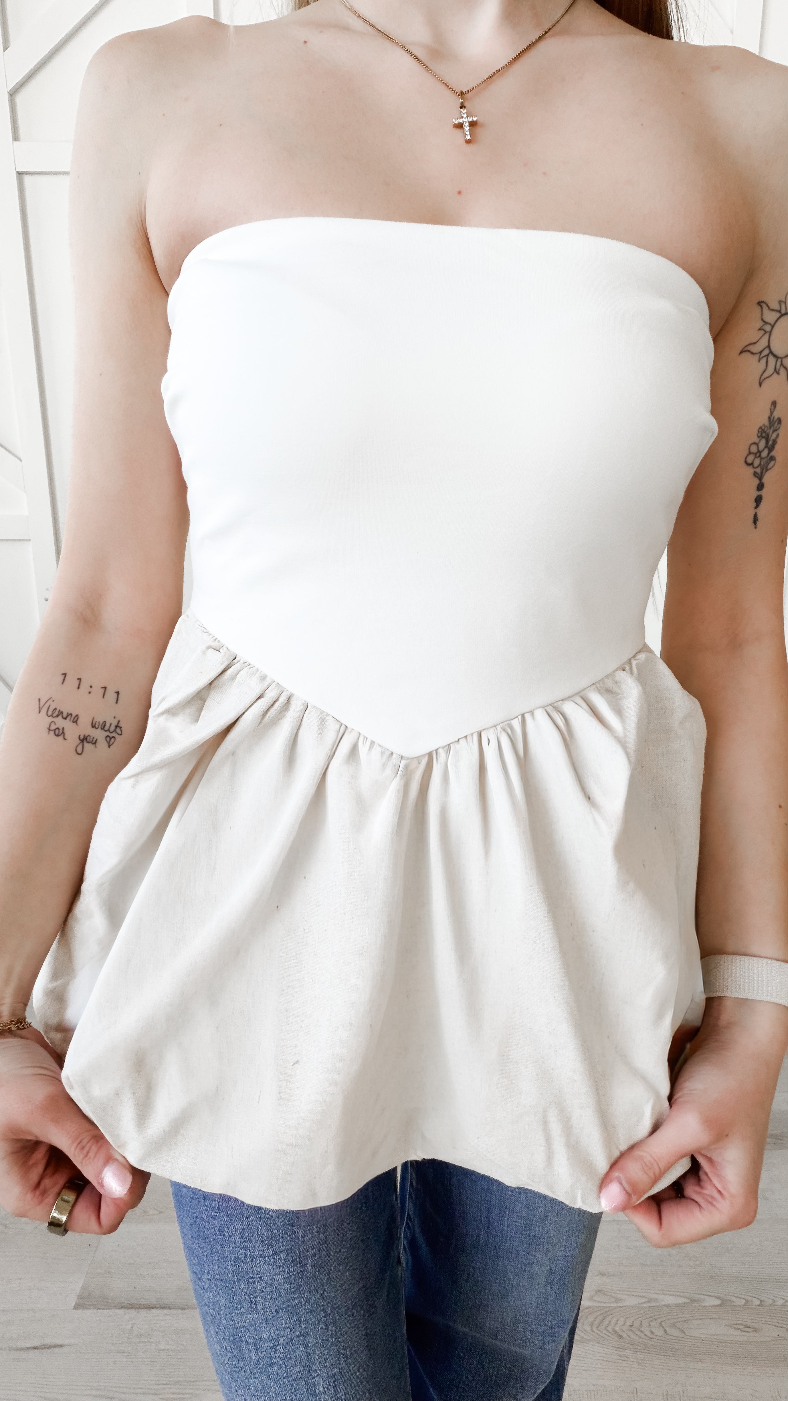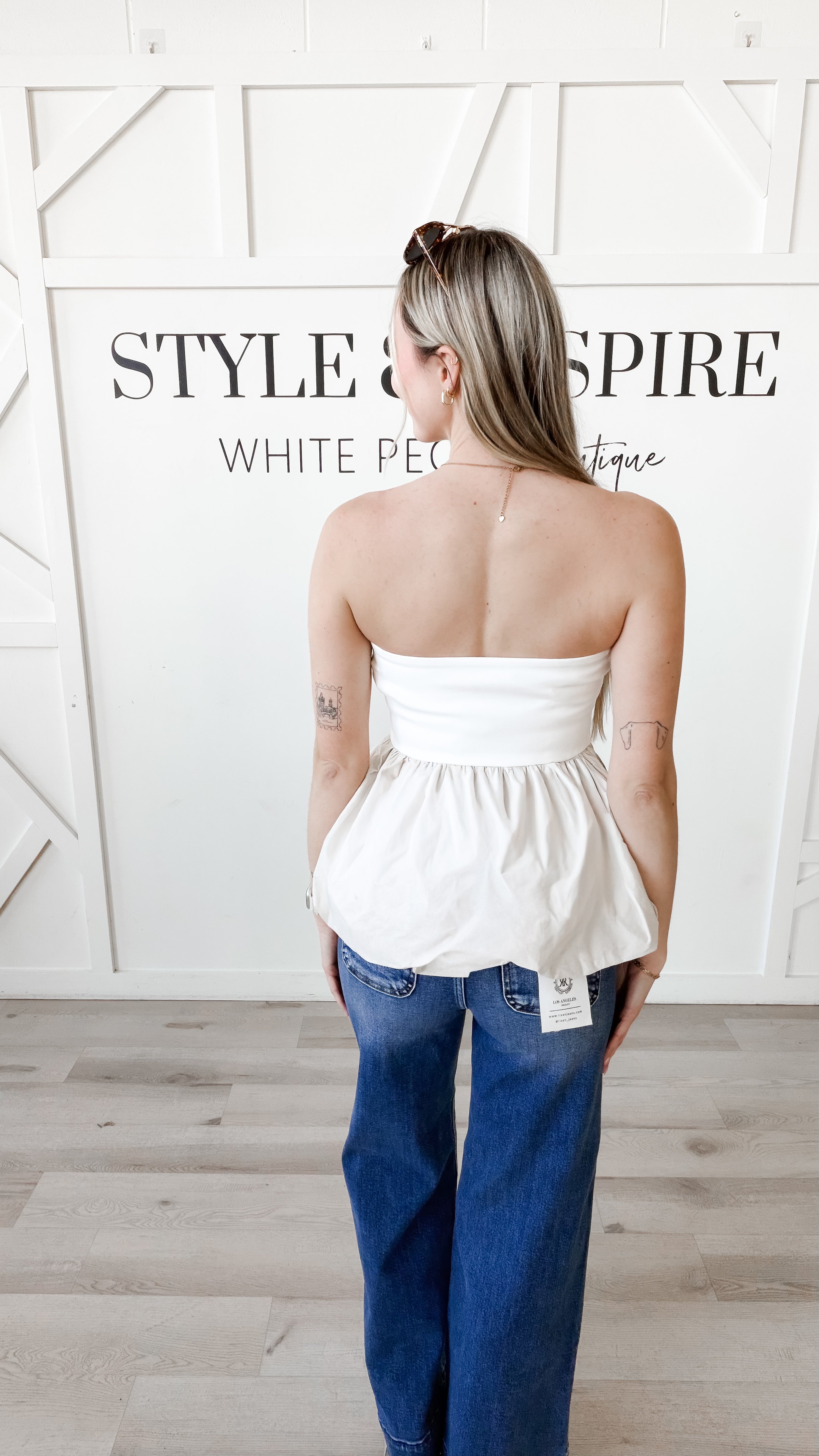 Chic, feminine, and effortlessly stylish — the Shawna Strapless Bubble Hem Top is a standout piece that brings modern structure with a playful twist.