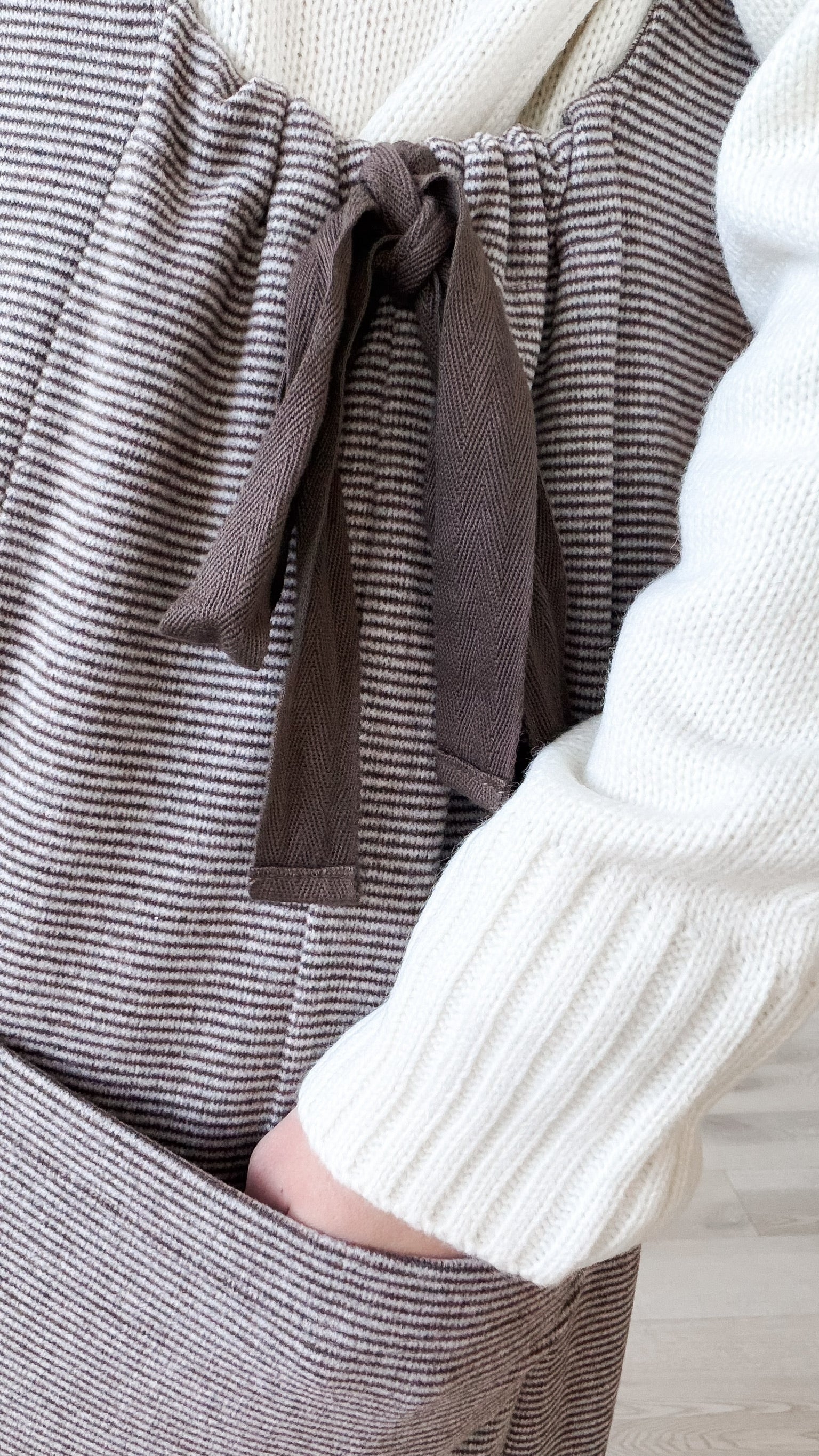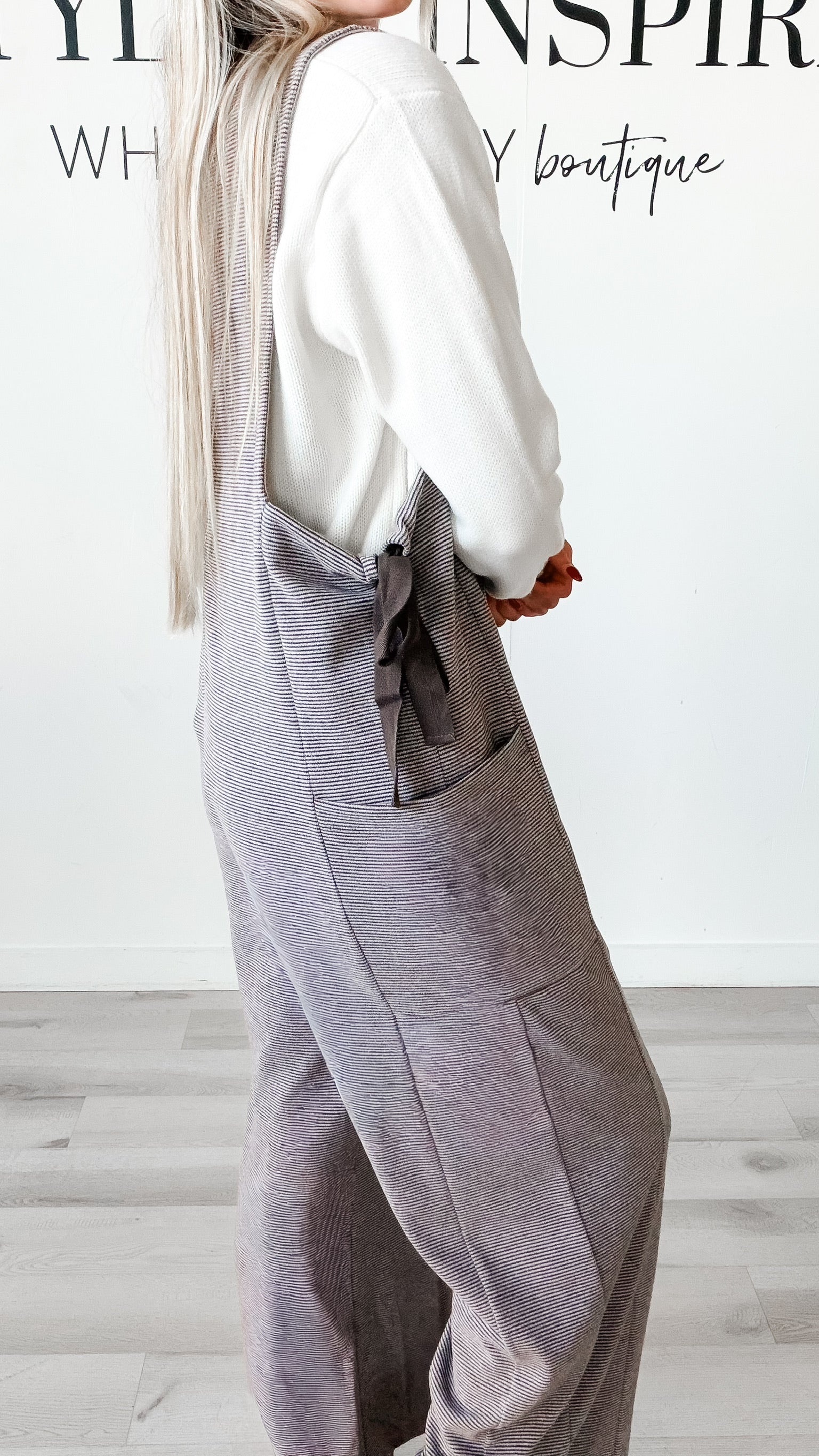 Style: The Cassie Side Ribbon Tie Overalls feature a 31 1/2" inseam and a flattering scoop neck design. Crafted from ultra-soft, lightweight fabric with a subtle stripe pattern, these sleeveless overalls offer a relaxed, wide-leg fit for comfort and ease of movement. The self-tie side ribbon at the waist adds a stylish, adjustable detail, enhancing both fit and silhouette. Ideal for effortless, expert-level casual styling.
