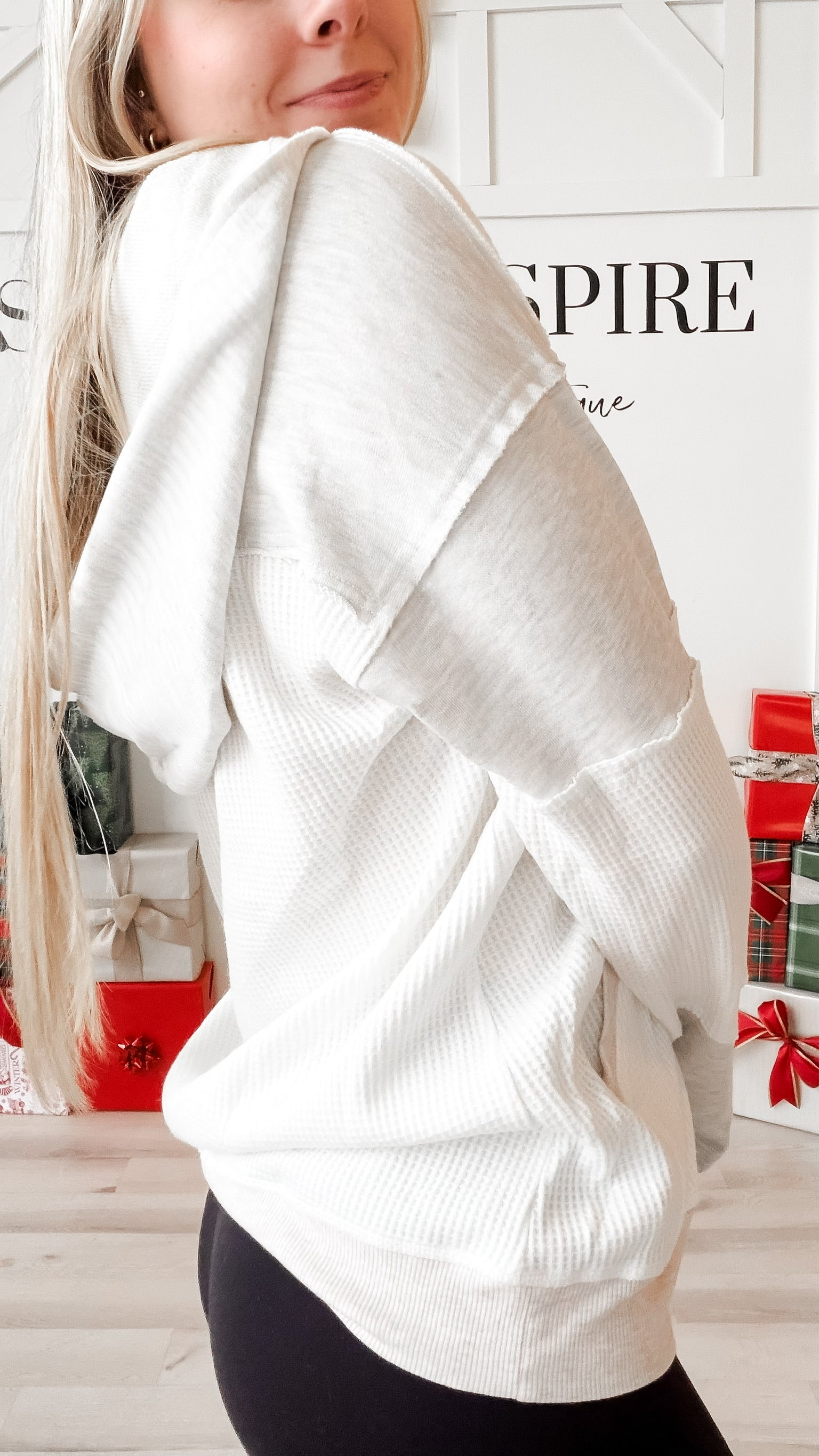 Style: The Elyse Mixed Media Hooded Cardigan combines contemporary design with versatile layering appeal. This piece features a relaxed silhouette with drop shoulders and a mid-hip length that works seamlessly over basics or dresses. The V-neck button-front closure offers easy styling flexibility, while reverse seam detailing adds subtle visual interest. Crafted from thoughtfully mixed media fabrics, it delivers both texture and movement. Long sleeves and a functional hood make this cardigan an essential transitional piece for any wardrobe.