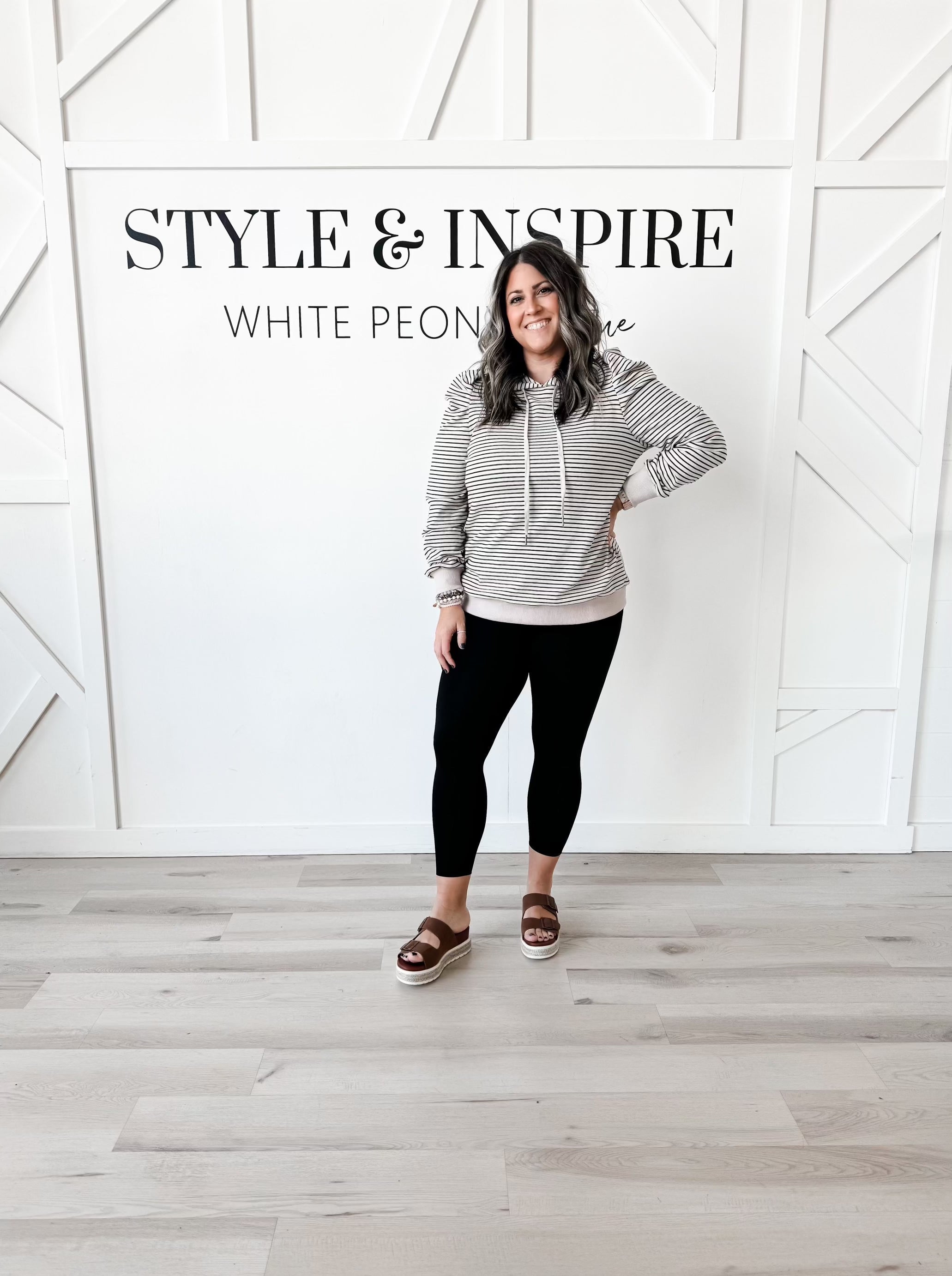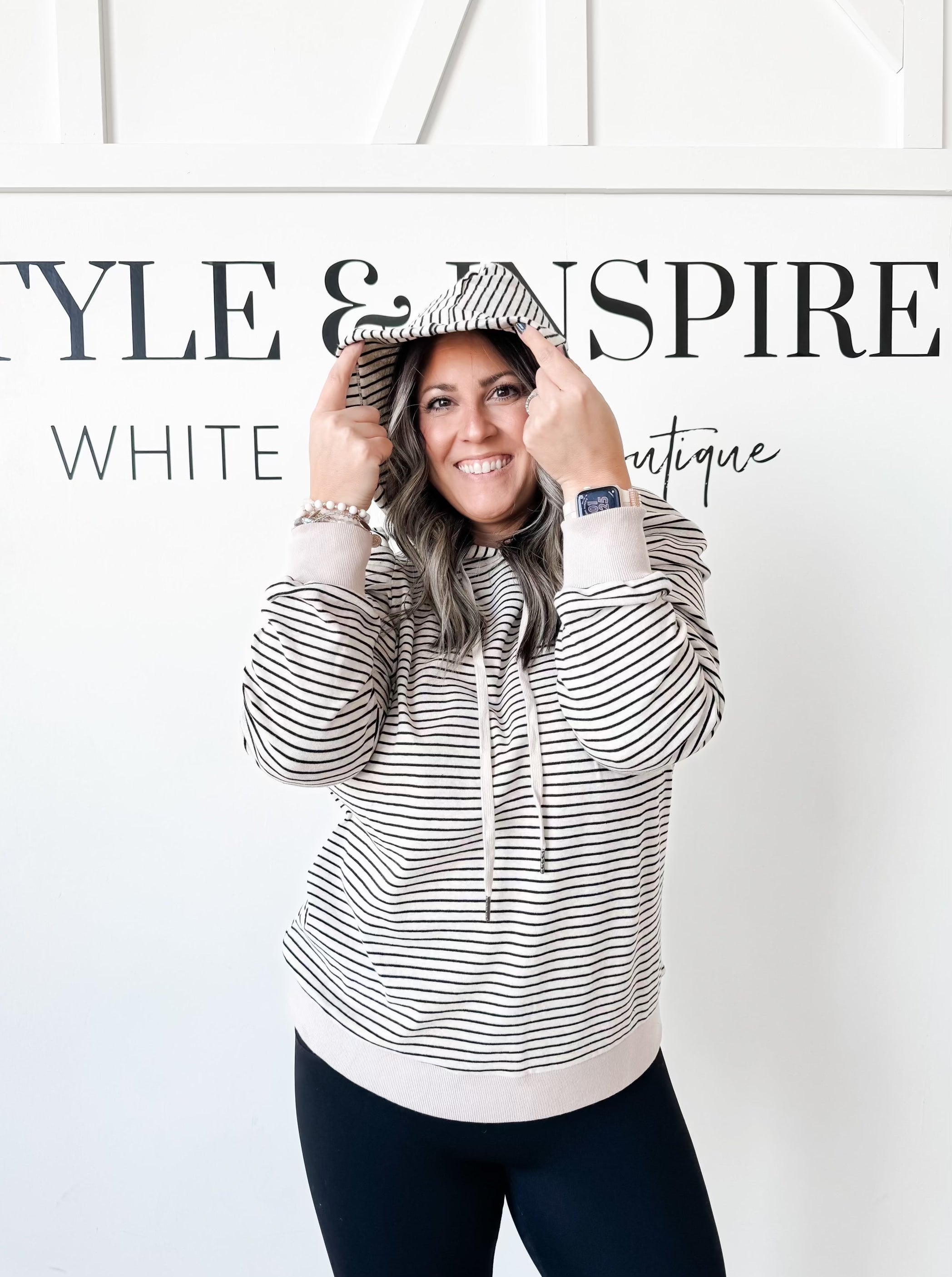 Style: Upgrade your wardrobe with our Jill Puff Sleeve Hoodie. Featuring an adjustable drawstring hood, gathered puff shoulders, and a contrast banded cuff and hem. With a stylish horizontal striped design, look effortlessly chic while staying cozy.