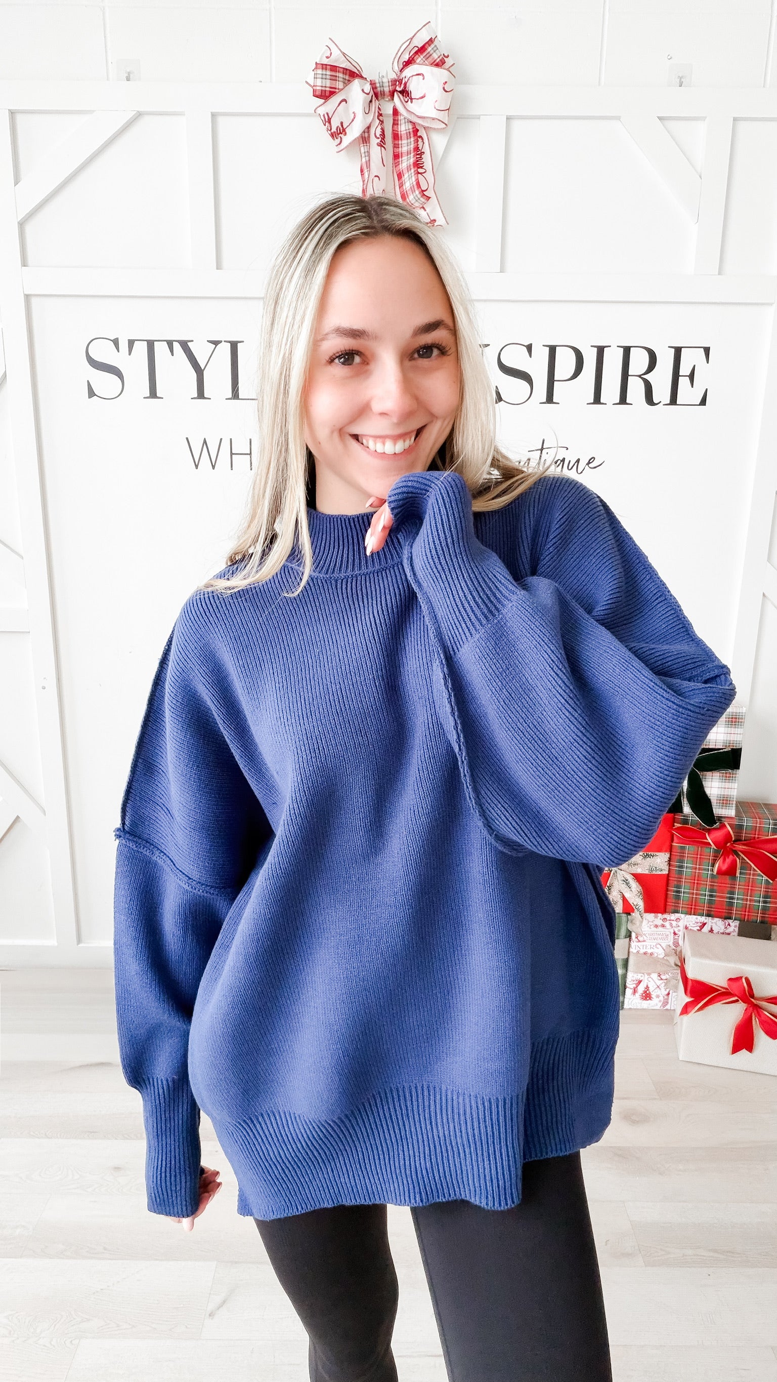 Style: The Kate Side Slit Oversized Sweater delivers effortless sophistication through thoughtfully designed details. This boxy silhouette features a relaxed crew neck and drop shoulders for a contemporary, comfortable fit. Long sleeves with wide cuffs frame the arms, while reverse seam construction adds refined texture. Strategic side slits enhance movement and visual interest, and the ribbed sweater knit provides structure and durability. Perfect for layering or wearing solo, this piece transitions seamlessly from casual to polished occasions.