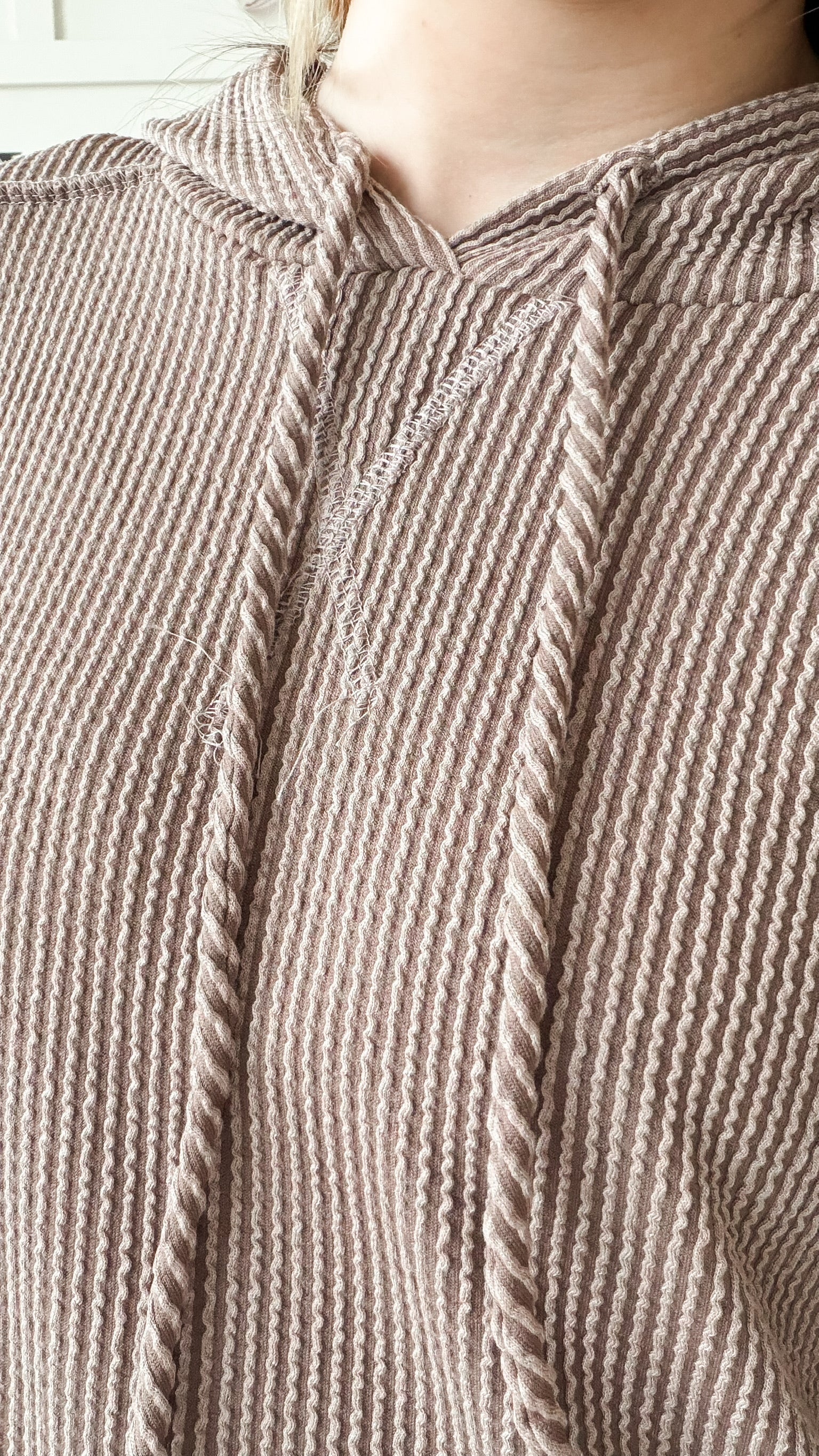 Style: The Marlys Urban Ribbed Hoodie features an adjustable hood with drawstrings for a customizable fit and relaxed drop shoulders that enhance comfort. Its long puff sleeves add a modern silhouette, while the straight hem falls neatly at the mid-hip. Crafted from durable urban rib knit fabric, this hoodie also showcases subtle contrast stitching for a refined, contemporary edge—perfect for an elevated casual look.