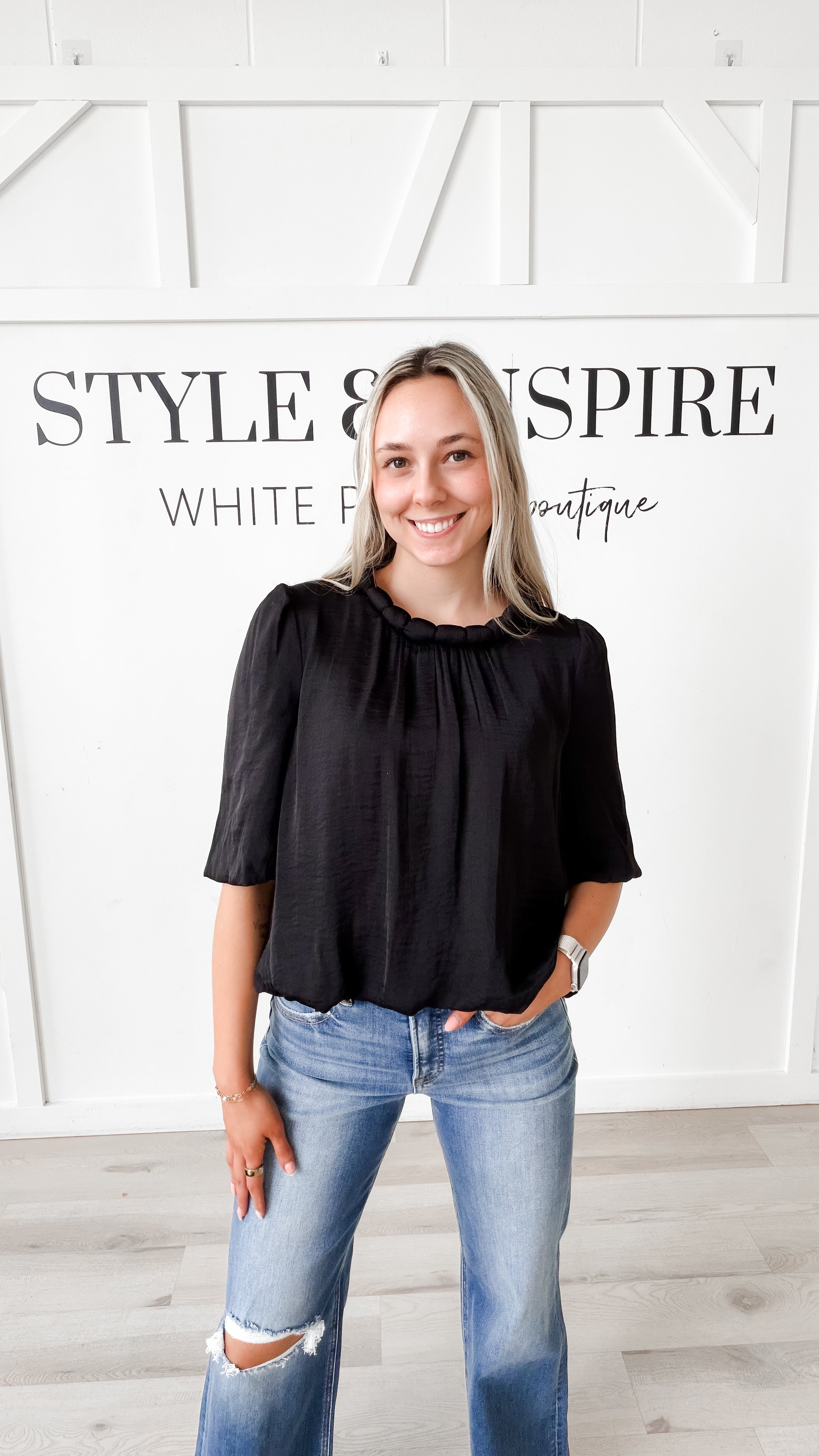 Sophia Neckline Accent Billow Blouse